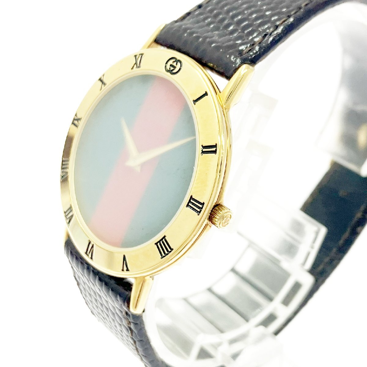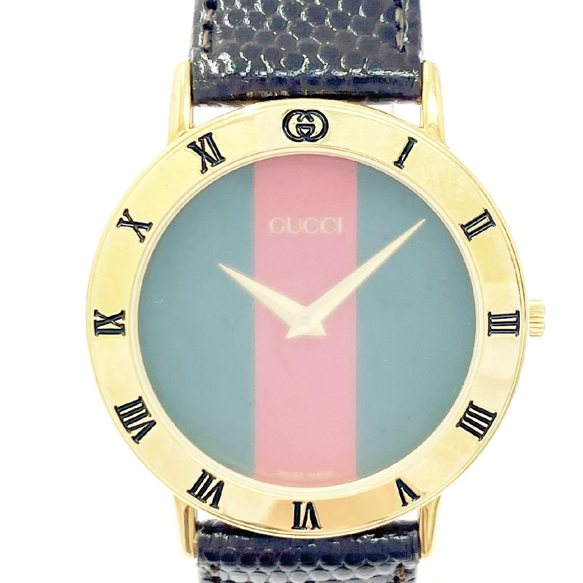 【1円スタート】GUCCI グッチ 3000.2.M GP グリーン×レッド文字盤 クオーツ メンズ腕時計 495473