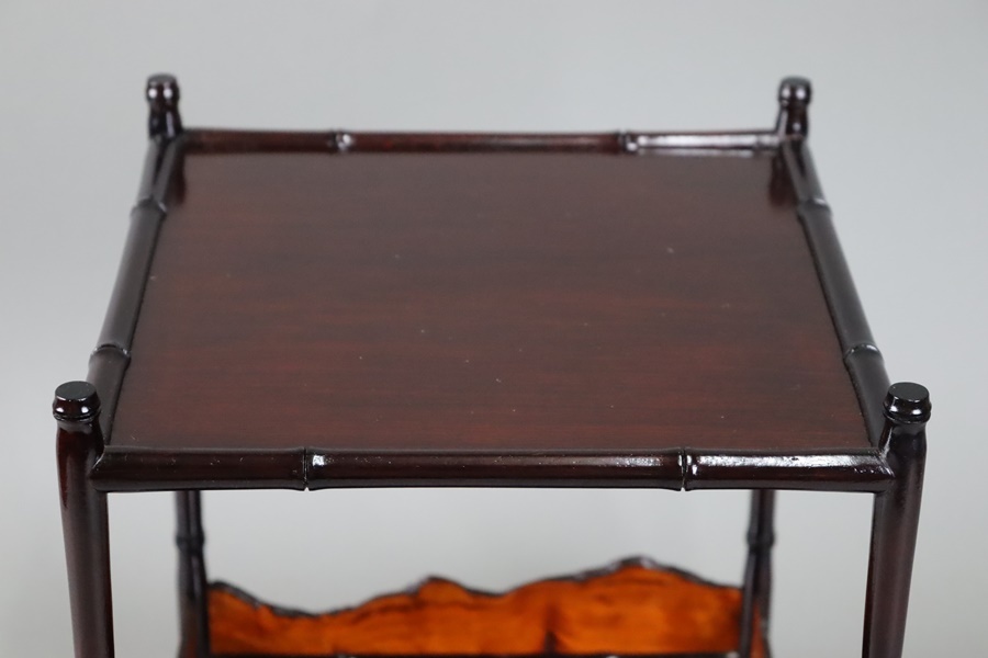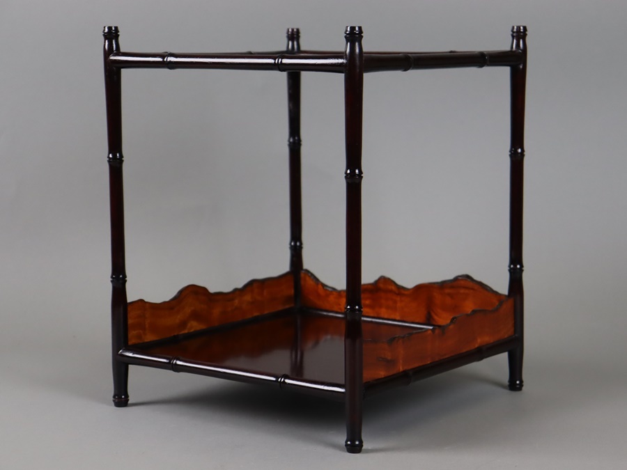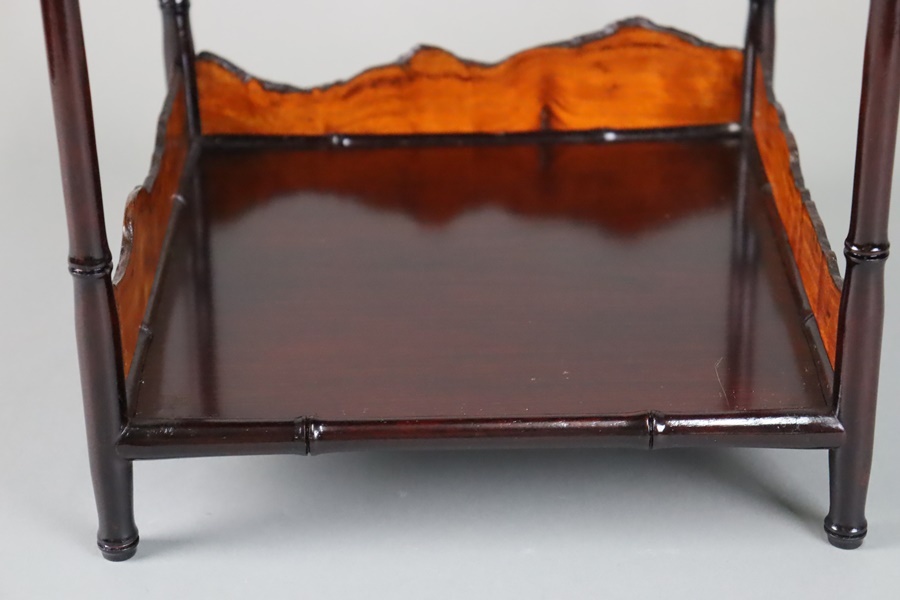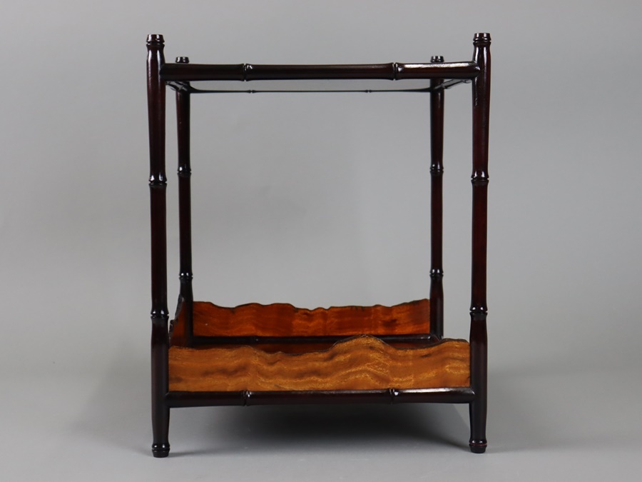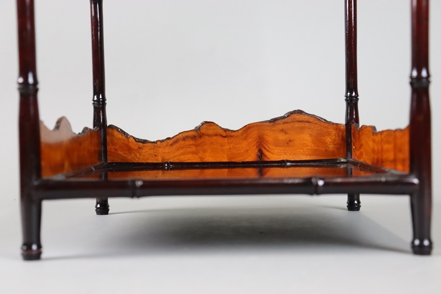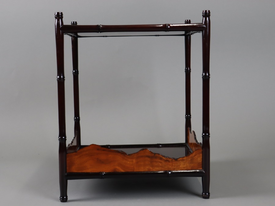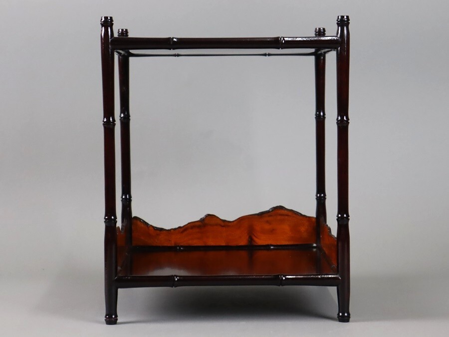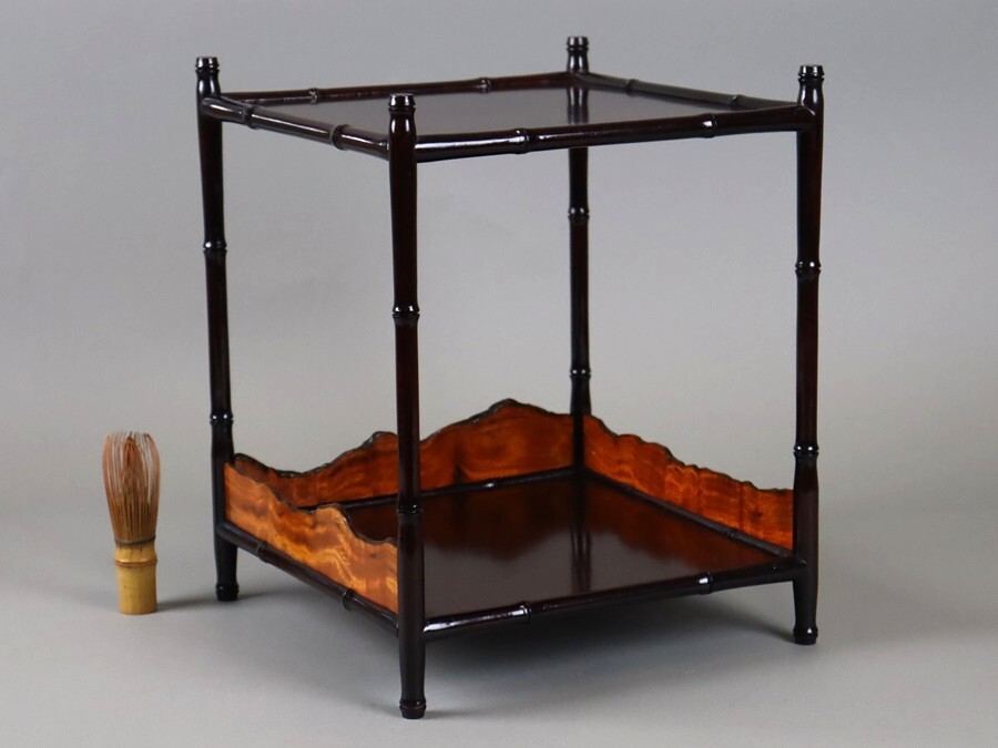 【煎茶道具 唐木 紫檀 華友棚 竹節彫刻 煎茶棚 高34,7cm】