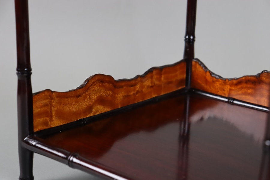 煎茶道具 唐木 紫檀 華友棚 竹節彫刻 煎茶棚 高34,7cm 細密細工 古美術品[d1093]