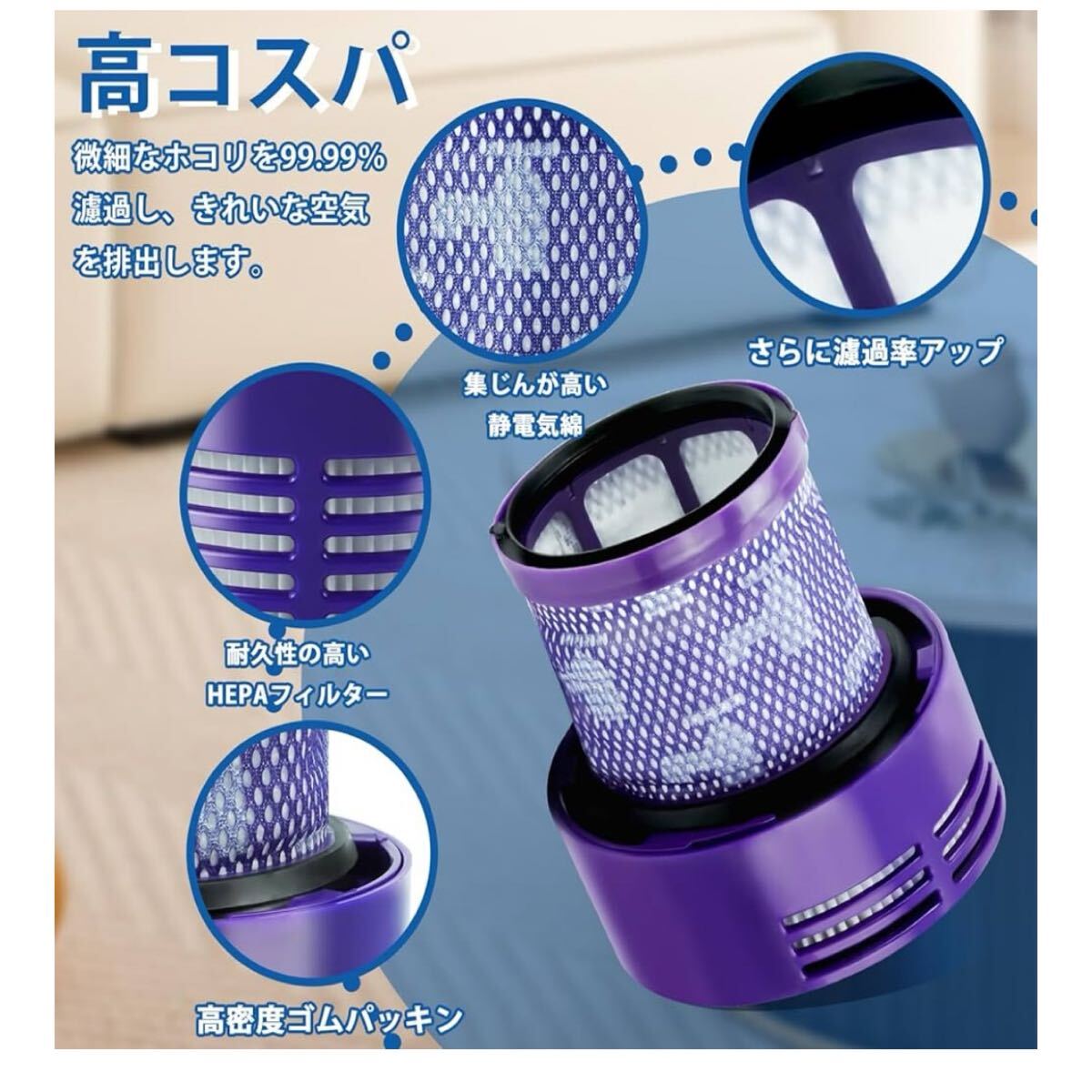 【高品質な材質】採用した静電気綿の材 効料はより多くのほこりを收容し、フィルターの效率を向上させることができます。高品質 なHEPAフィルターを採用しており、0.3ミクロンの微細な粒子を99.99%捕らえられますから、細かい粒子、ほこり、花粉などを効率的に阻止します。