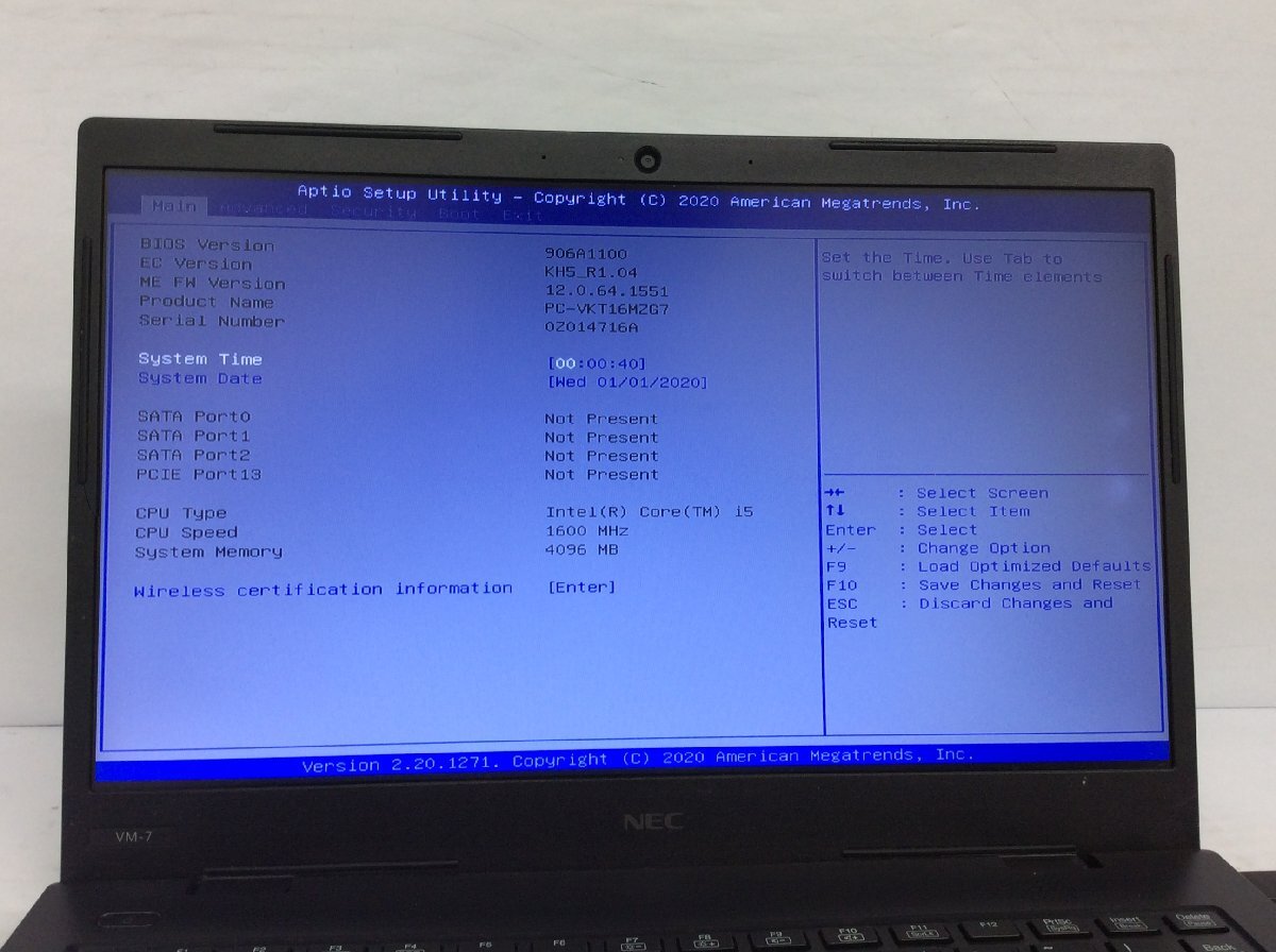 ジャンク/ NEC PC-VKT16MZG7 Intel Core i5-8265U メモリ4.1GB ストレージ無し 【K22620】