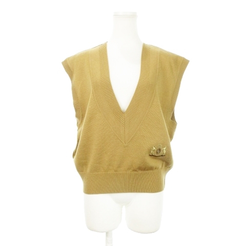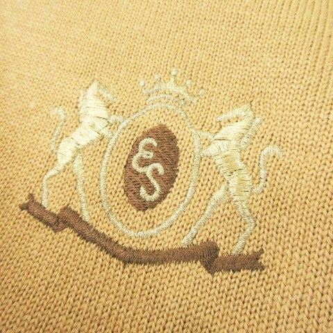レリアン Leilian ニットベスト プルオーバー Vネック ウール 刺繍 エンブレム 馬 ワンポイント 9 茶 ブラウン /AH12 レディース