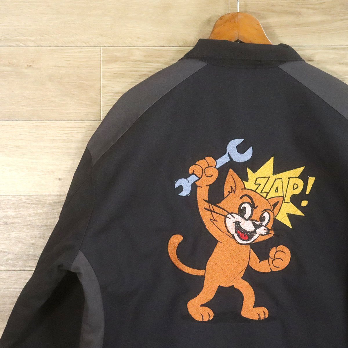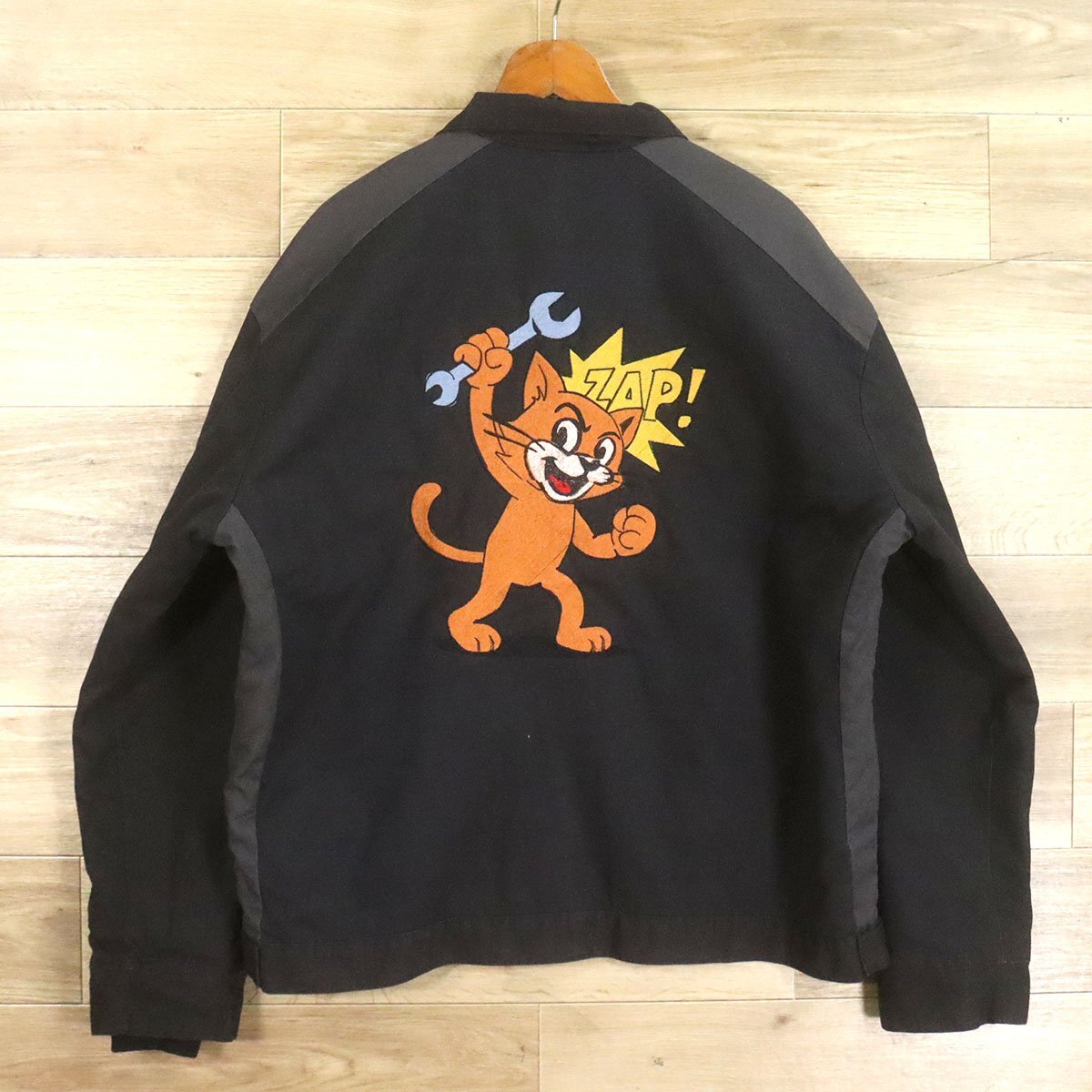 J8T/O9.15-5 アメリカ古着 RED KAP レッドキャップ ワークジャケット XLサイズ 刺繍 工具持った猫 ネコ メンズ ジャンパー