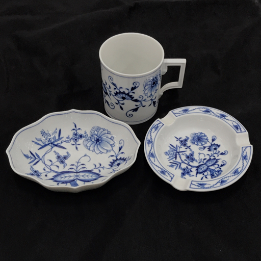 1円 マイセン ブルーオニオン マグカップ 他 プレート / アシュトレイ ブランド容器 計3点 セット Meissen A21126 |