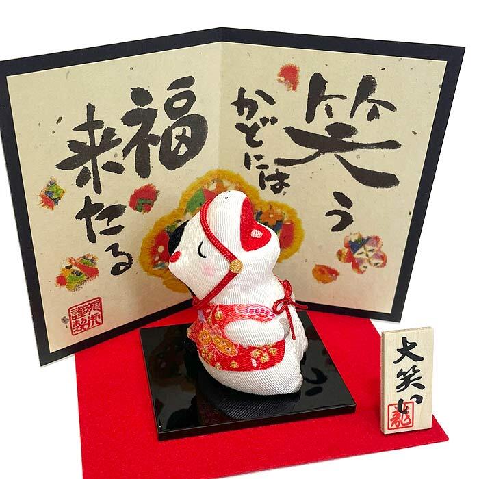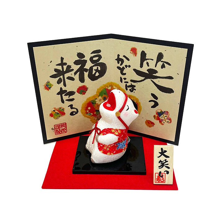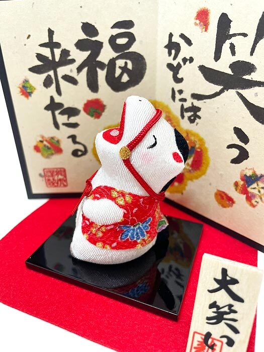 大笑い午(屏風付) 2026年午年干支飾り 午歳ちりめん飾り 丙午(ひのえ・うま)歳 干支置物 正月飾り 開運 魔除け リュウコドウ 龍虎堂