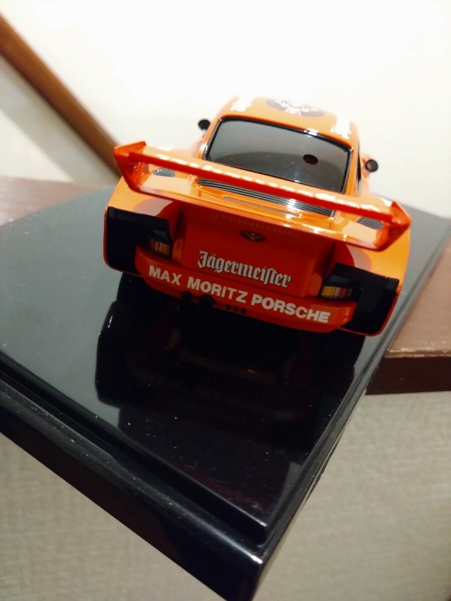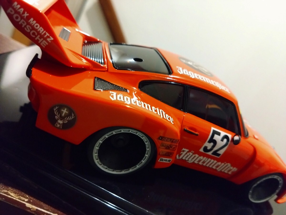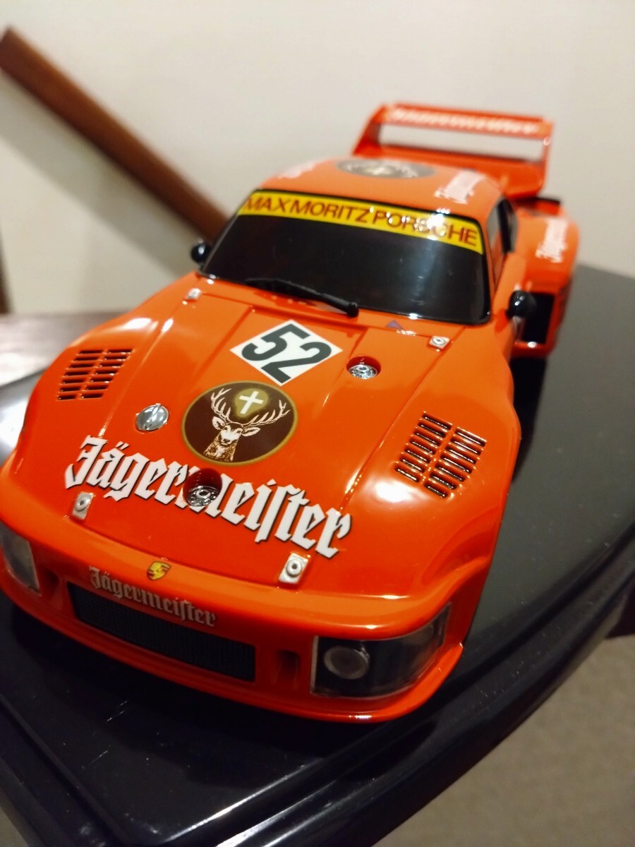 こちらはKyosho Mini-Z用の1/28スケールボディシェル、Porsche 935 Turbo 1977 Jgermeister #52です。ポリカーボネート製で光沢仕上げが施され、オレンジのボディにJgermeisterロゴと#52ナンバーが特徴的です。ボディ長さ約13-15cm、ホイールベース94mmで、MR-015RM、MR-02、MR-03、MR-04などのRWDシャーシに高い互換性があります(AWDシャーシは調整が必要)。レースカーのリアルなデザインを再現したコレクターアイテムです。