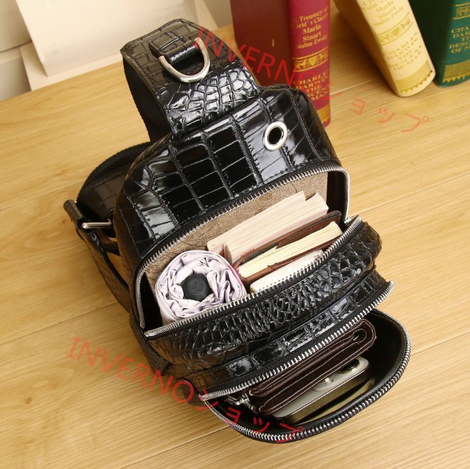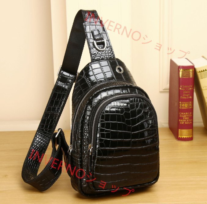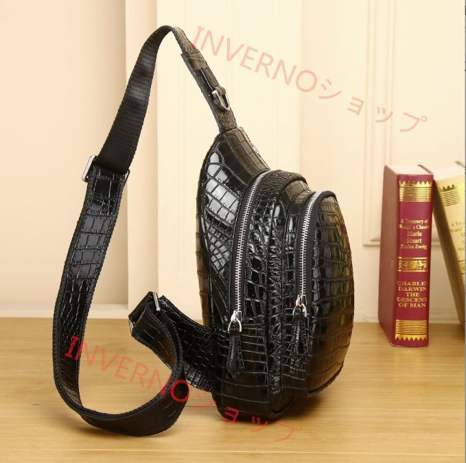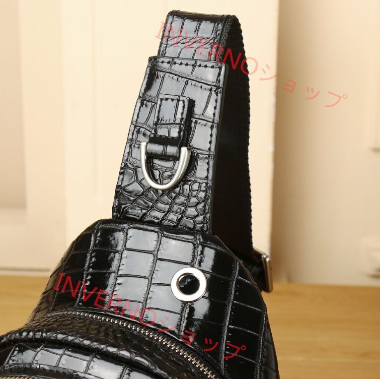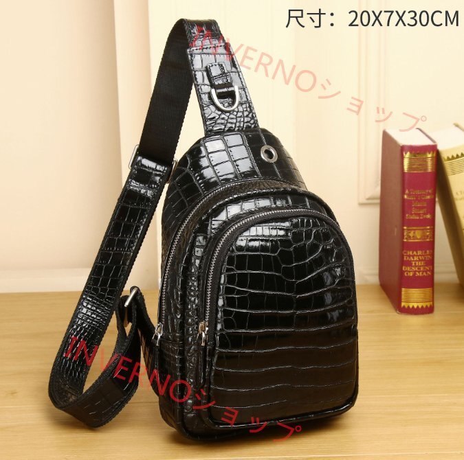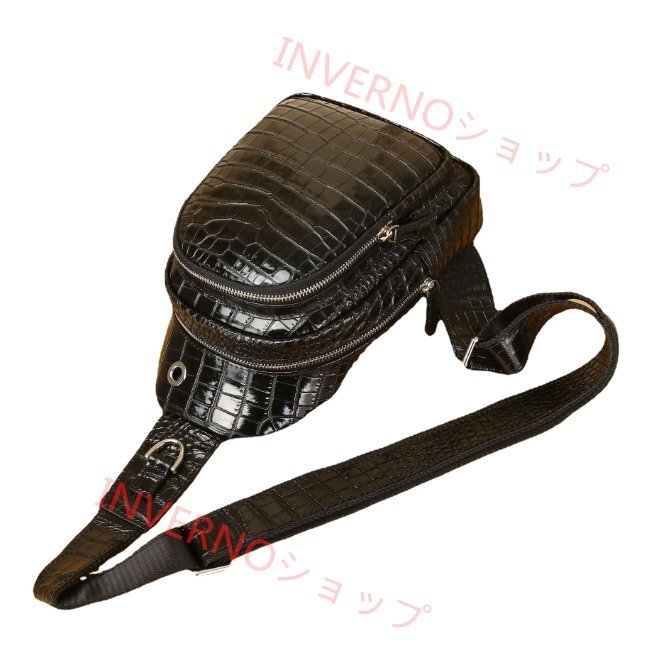 新品 クロコダイル本革 ワニレザー メンズバッグ 斜め掛け ボディバッグ 大容量 本革 センター取り アウトドア スリングバッグ