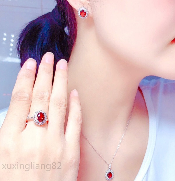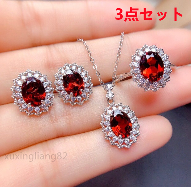 極美 ジュエリー3点 レディース ルビー ペンダント ネックレス リング ピアス ジルコン お飾り 真の輝く アクセサリー チェーン付き