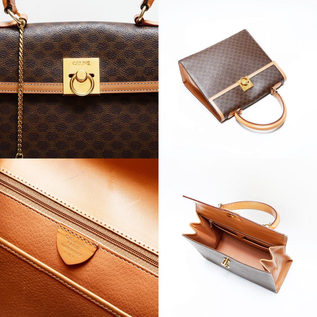 極美品 CELINE マカダム PVC ハンドバッグ ブラウン