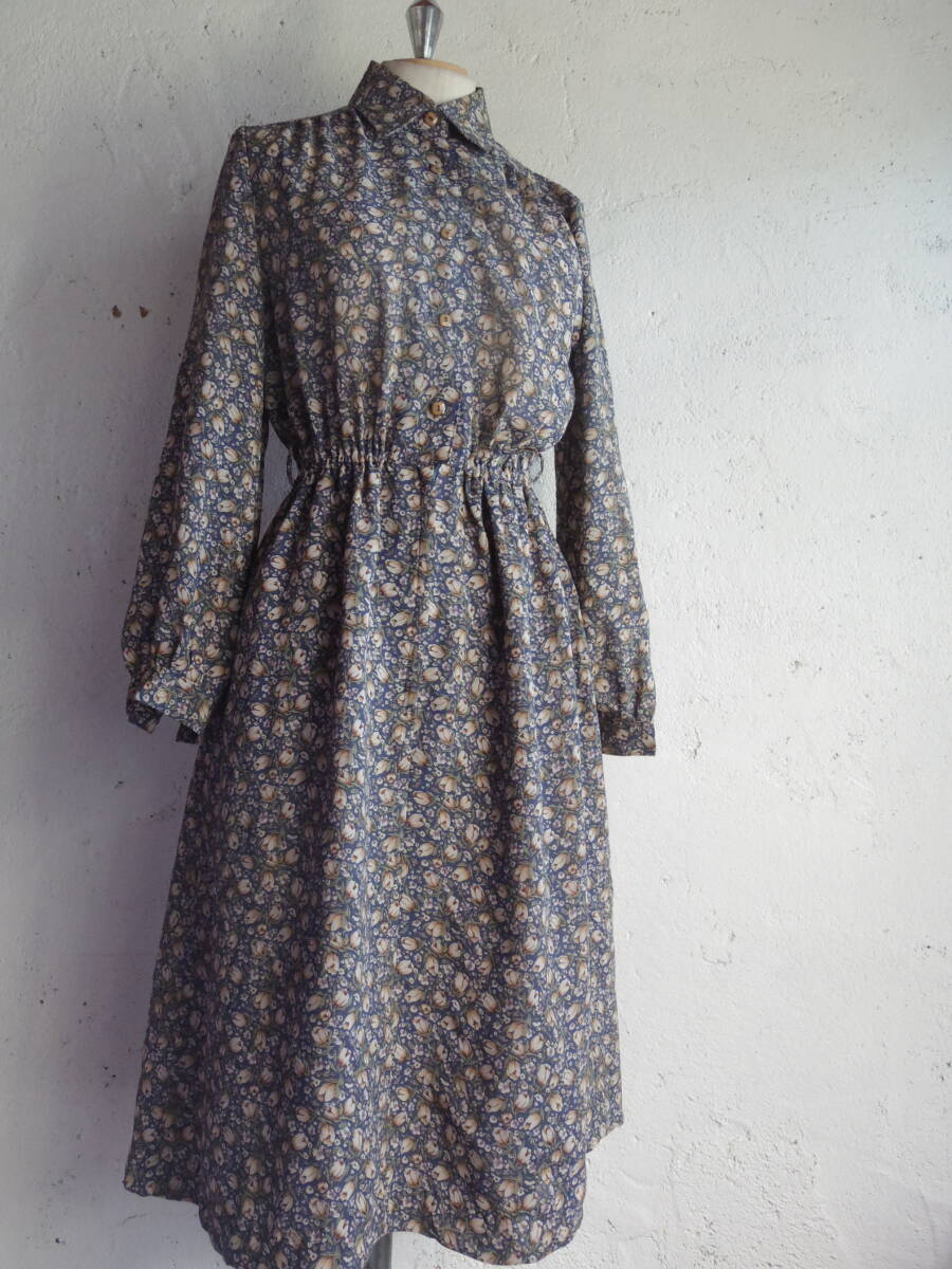 +--- 古着♪レトロVintage小花柄クラシカルおしゃれモダン長袖ワンピ♪ ---+