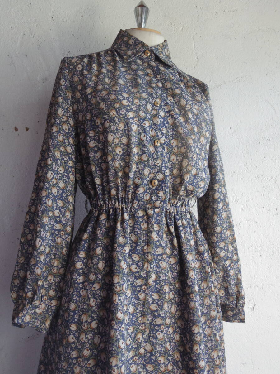 古着♪レトロVintage花柄おしゃれモダン長袖秋冬ワンピ♪昭和レトロワンピース70s60s70年代60年代昭和レトロビンテージクラシカルワンピ