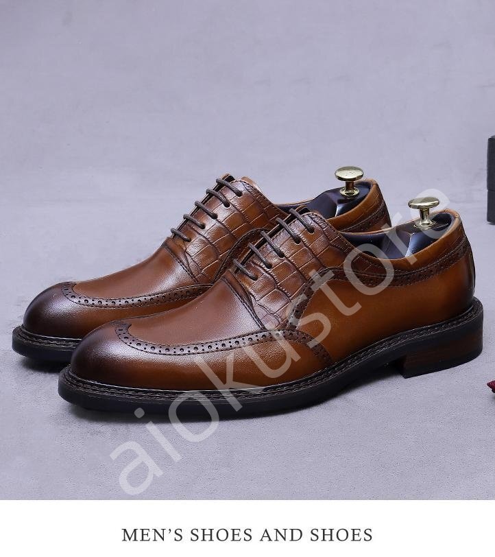 26cm 綺麗 本革 イギリス風 正装 革靴 紳士 紐靴 オフィス 単靴 ビジネスシューズ 職人手作り 冠婚葬祭 メンズシューズ ブラウン##A020