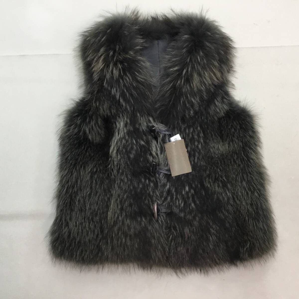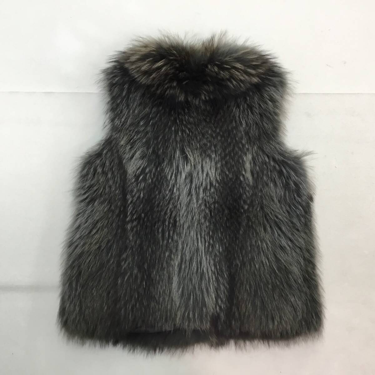 ■タグ付 ラクーンベスト リアルファーベスト 本毛皮ベスト カーキ Lサイズ レディース チャイニーズラクーン ブランド不明 0.7kg