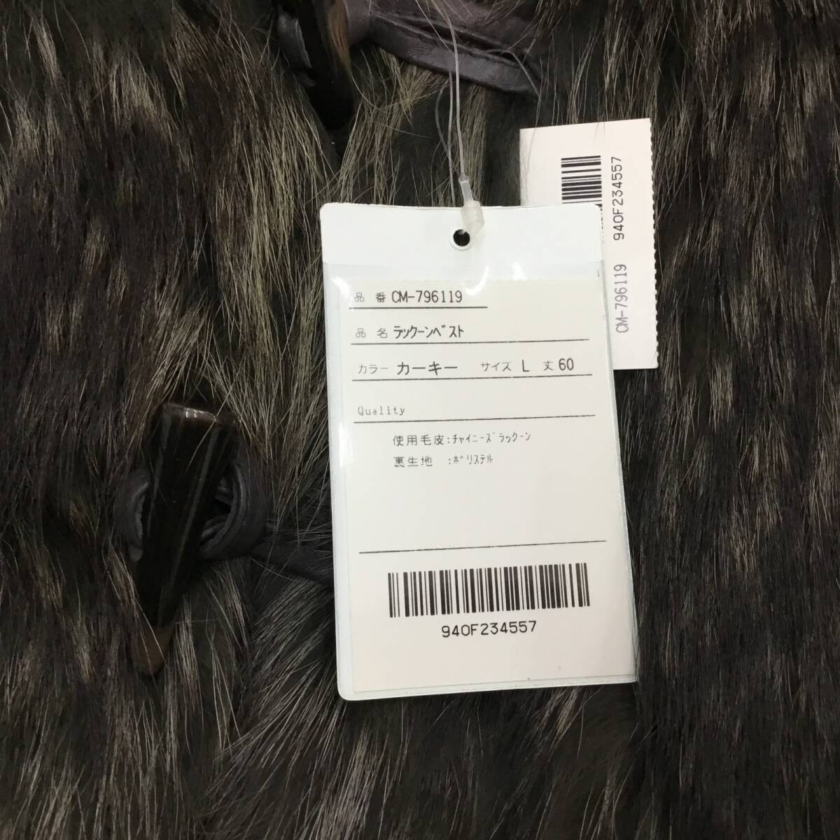 ・商品名■ タグ付 ラクーンベスト リアルファーベスト カーキ Lサイズ レディース チャイニーズラクーン ブランド不明 0.7kg