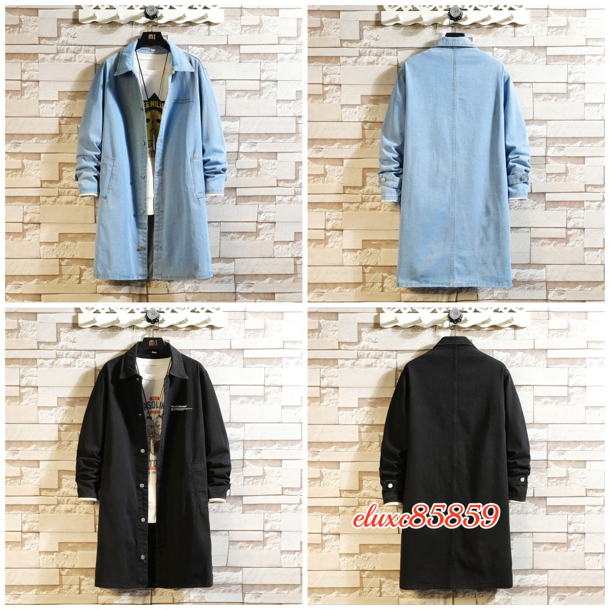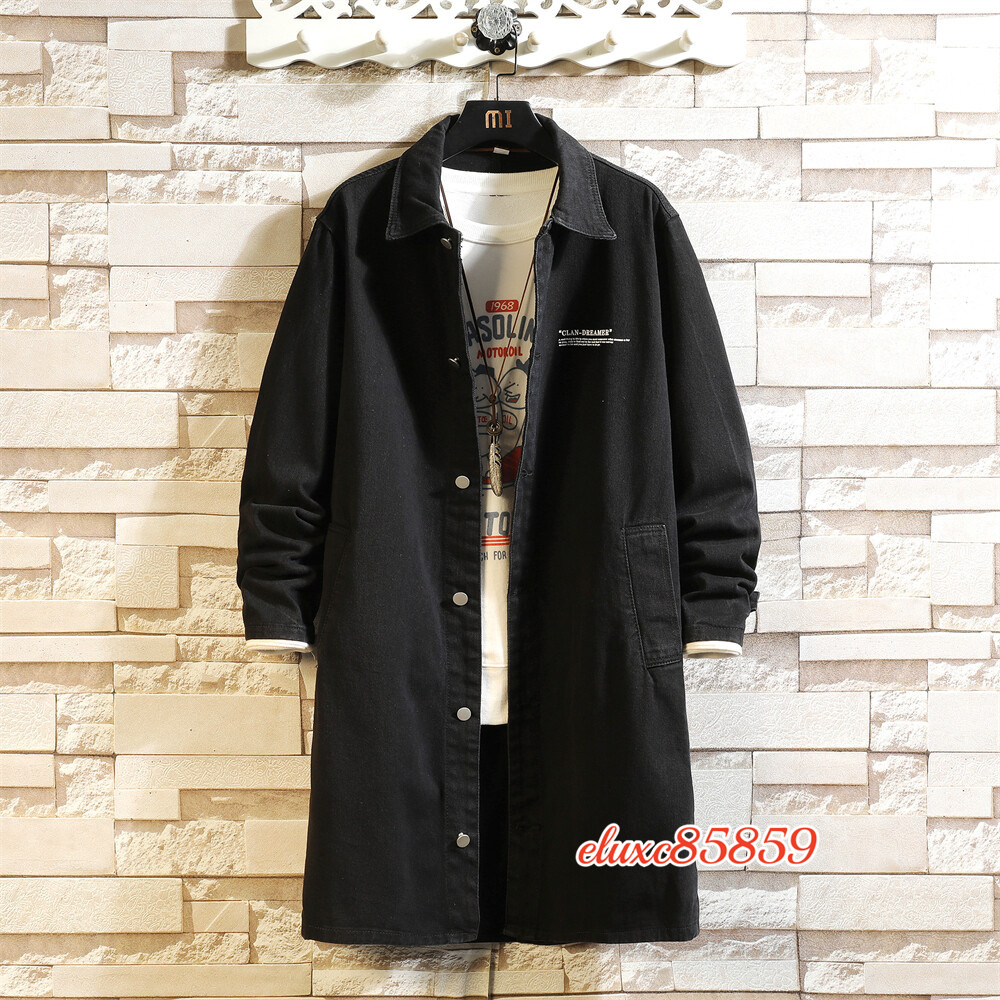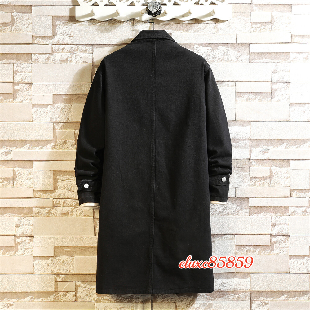 特売 秋新品 メンズ デニムトレンチコート ロング ジャンパー デニムジャケット ビンテージ アウター サイズ選択可M ブラック