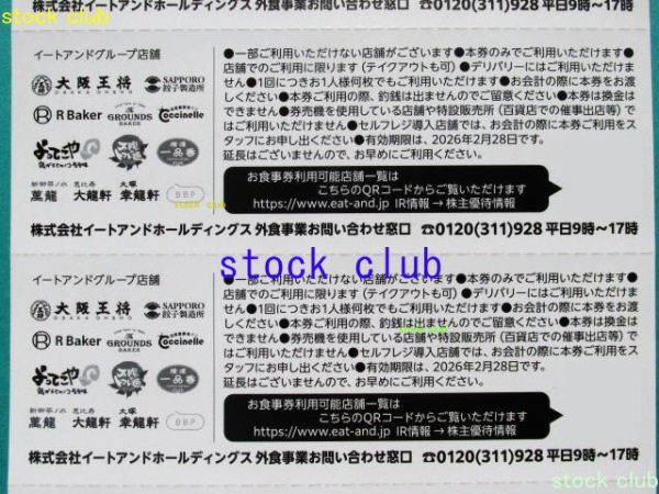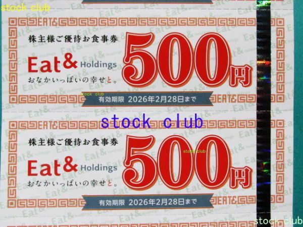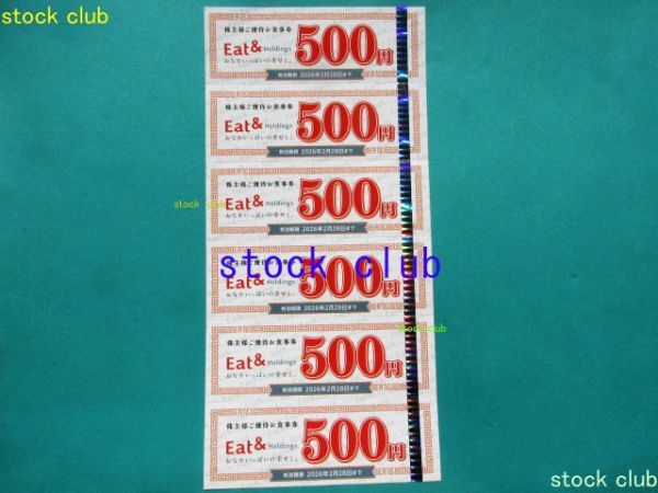イートアンド株主優待の株主優待お食事券500円券6枚(3,000円分)です。