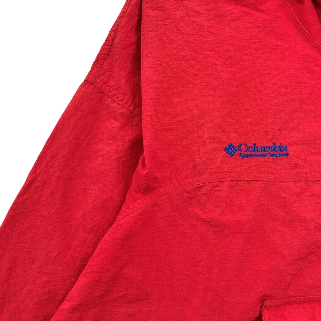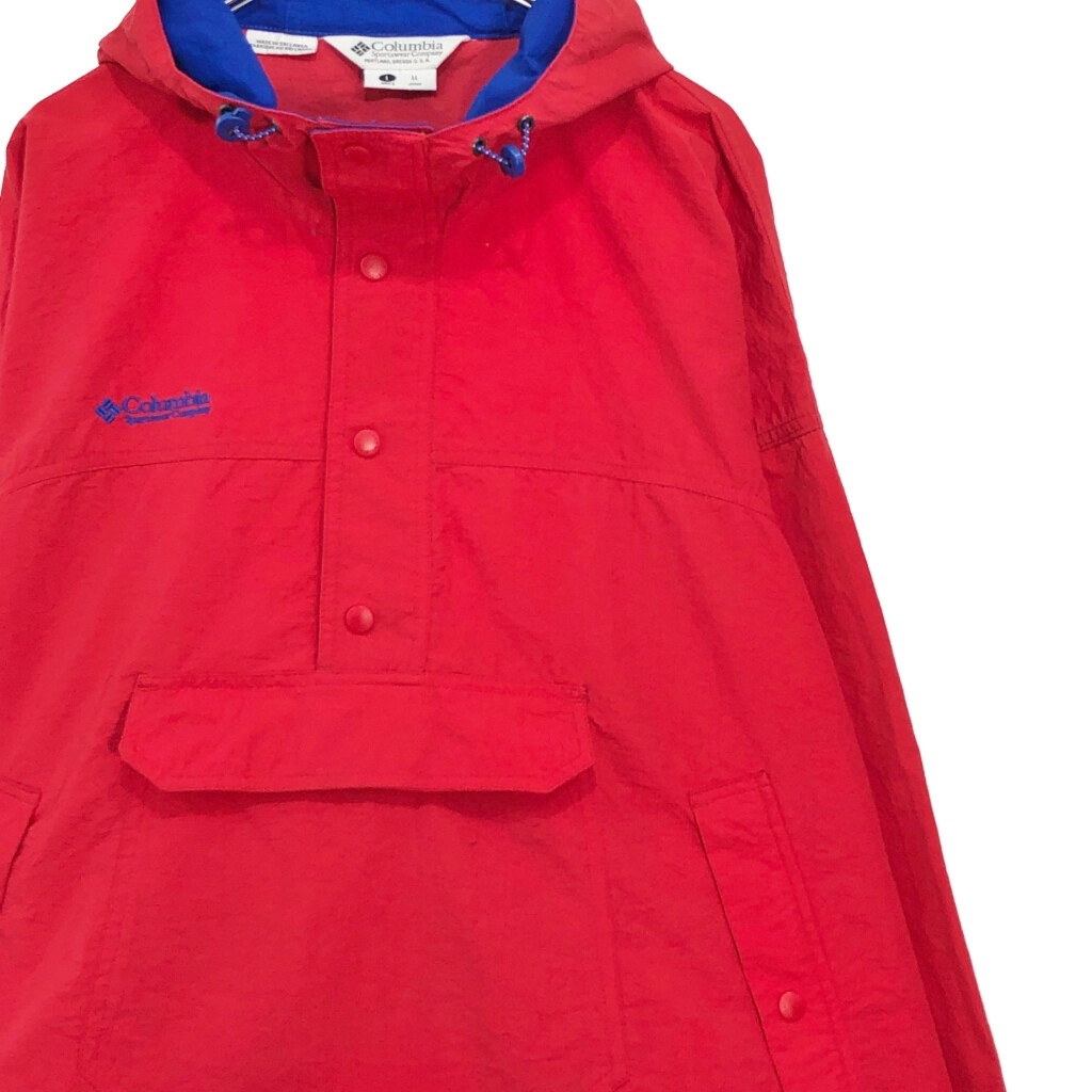 | 【商品管理番号】 V0656 【ブランド】 Columbia/コロンビア 【サイズ】 L 【実寸サイズ】 肩幅:約73cm 着丈:約74cm 身幅:約76cm 袖丈:約57cm 【主な素材】 表地 : ナイロン 【色】 レッド 【仕様】 90年代 フードドローコード、裾ドローコード、リップストップ アウトドア アノラックパーカー 【状態】 汚れ:袖、袖先、腹部、腰 破れ:袖 | |||
