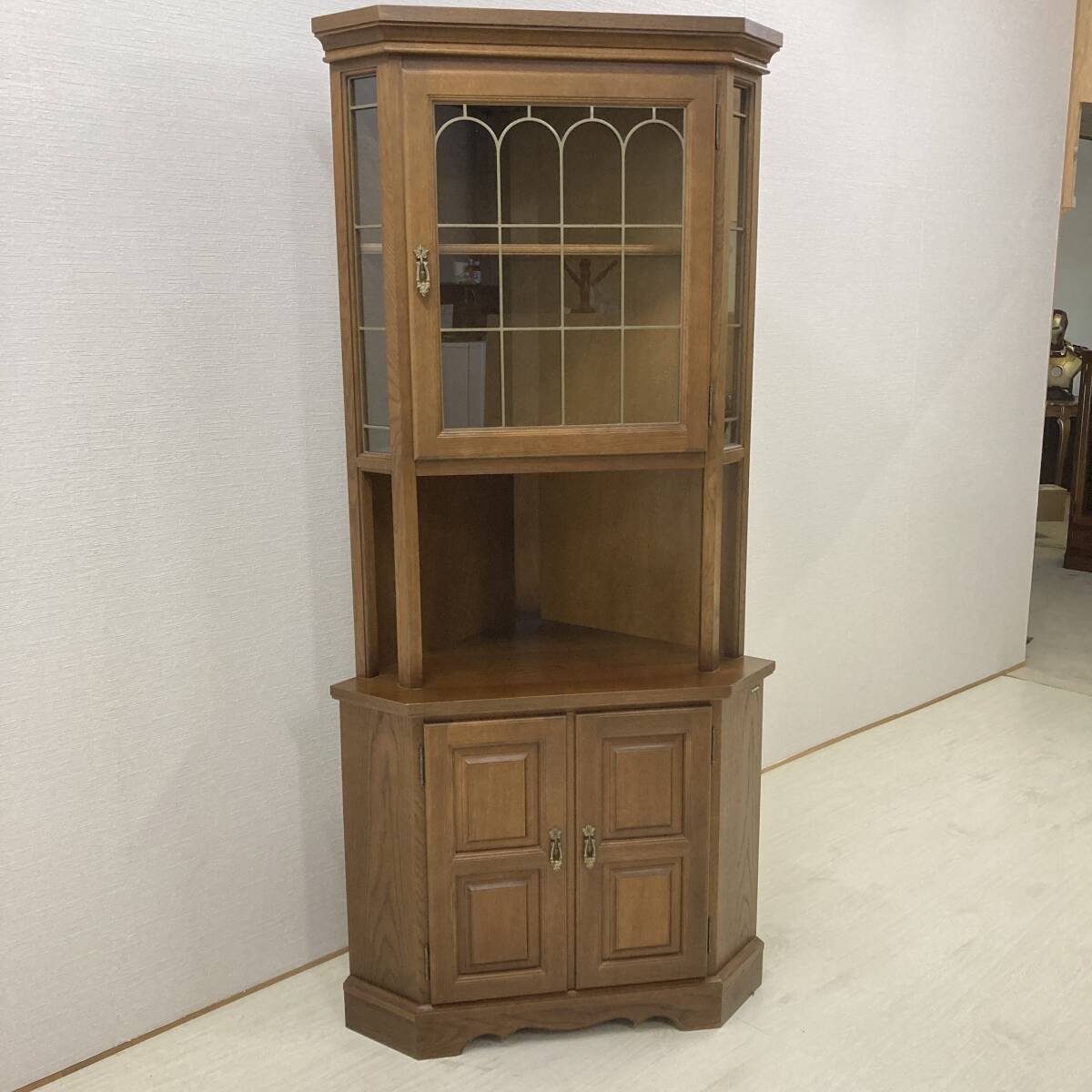 【オールドカリモク】コーナーキャビネット 飾り棚 コロニアル