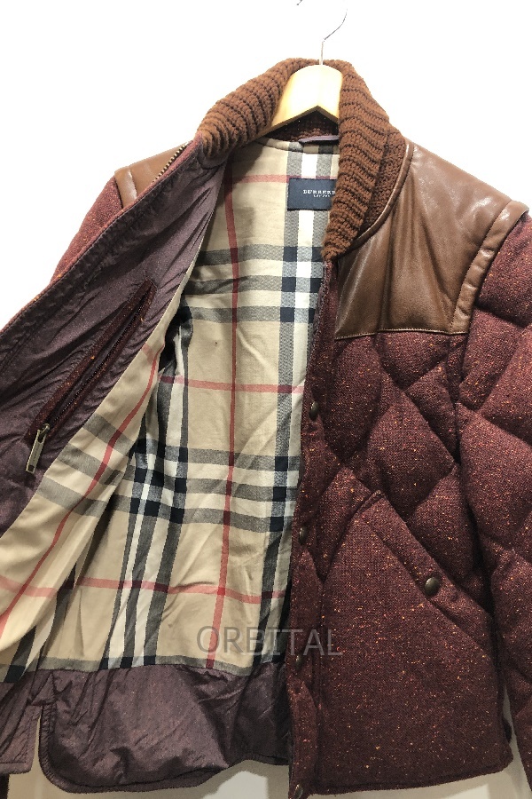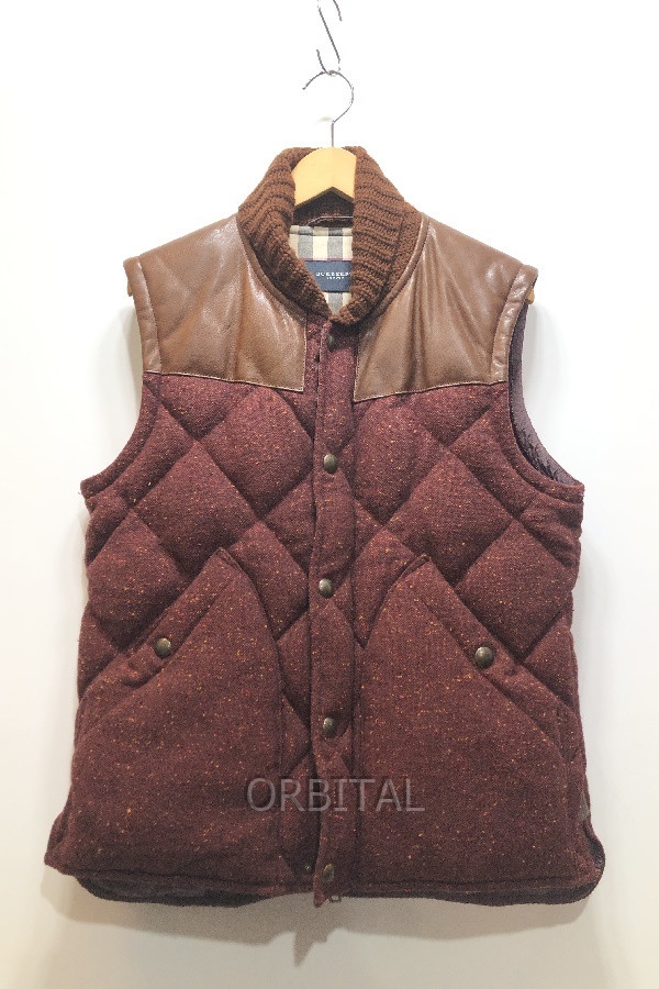 経堂) バーバリー Burberry サンプル ウール レザー 2WAY ダウンジャケット ベスト サイズ40 エンジ ブラウン レディース