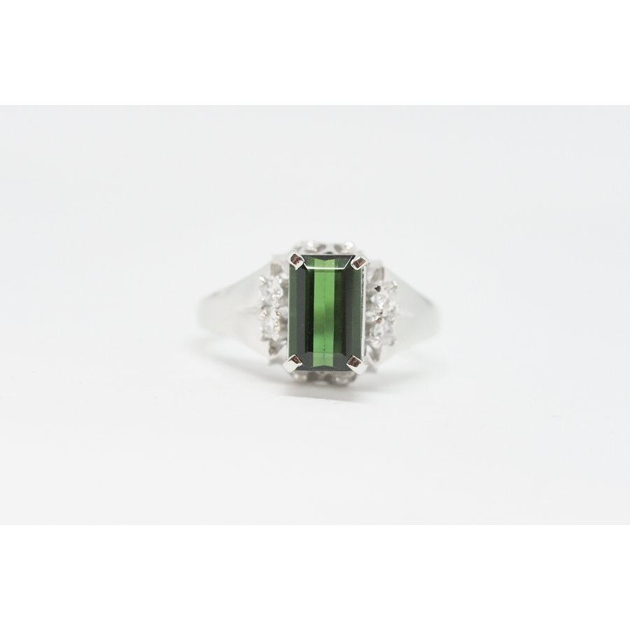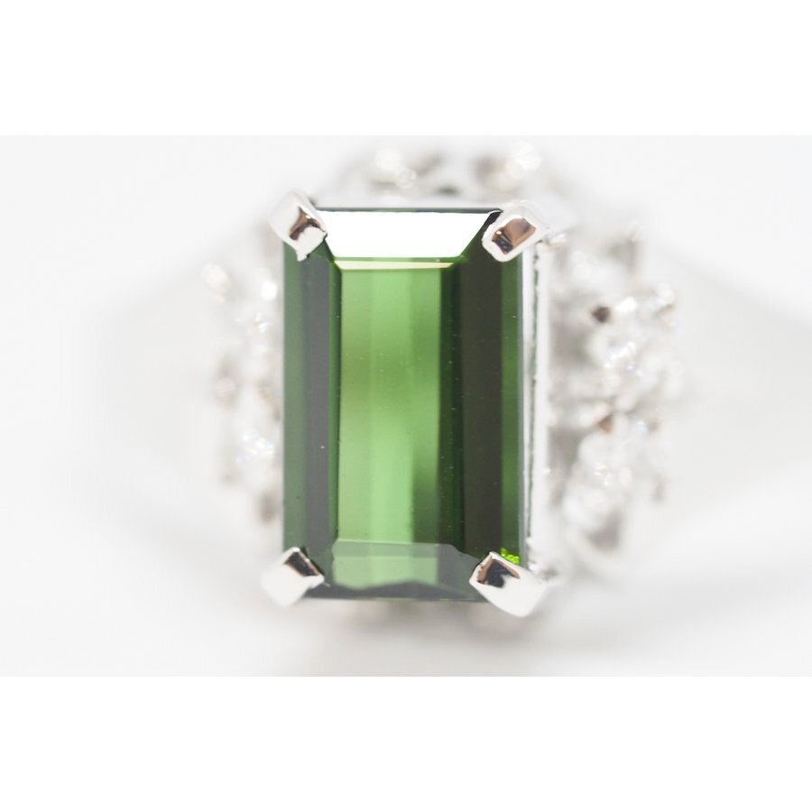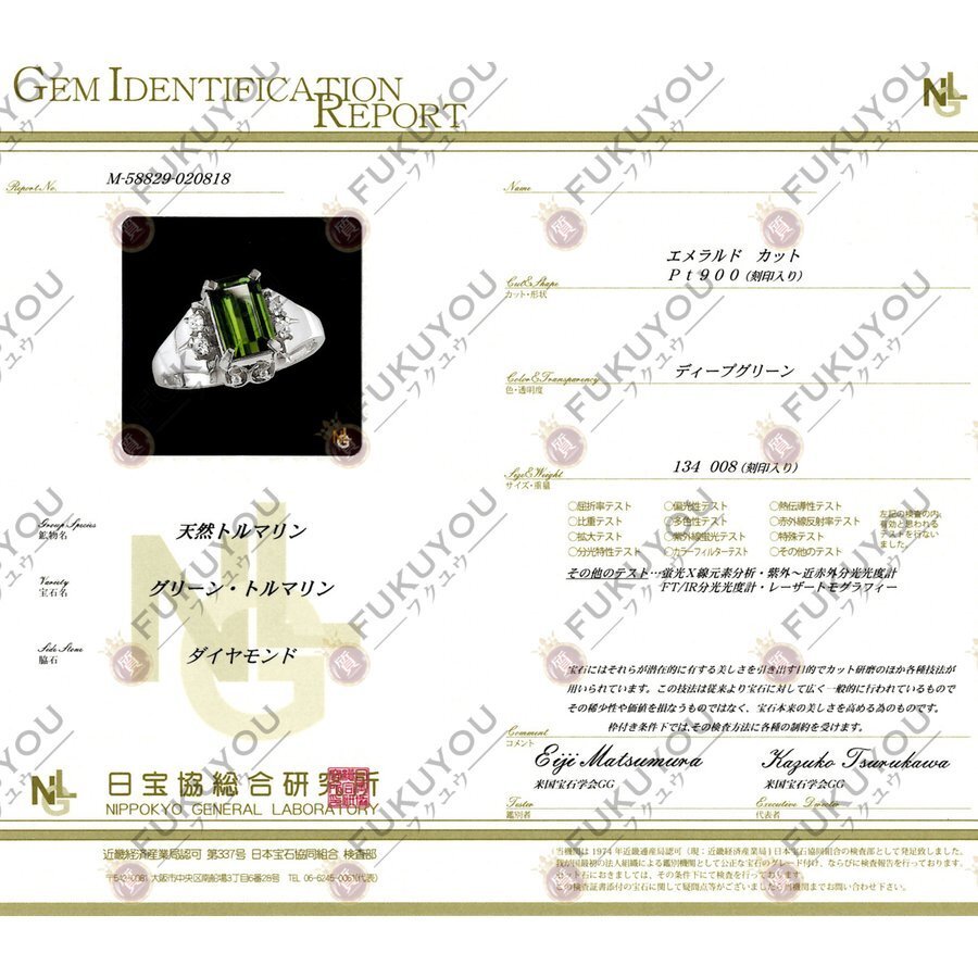 商品名 | Pt900 グリーン・トルマリン カラーストーン メレダイヤモンド 1.34ct/0.08ct プラチナデザインリング 10号 4.6g 指輪 鑑別書付 |