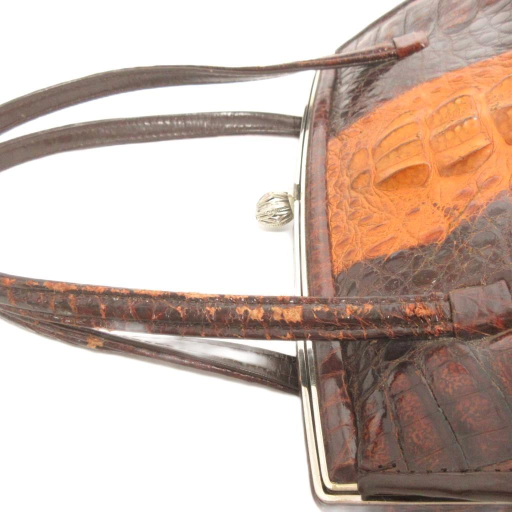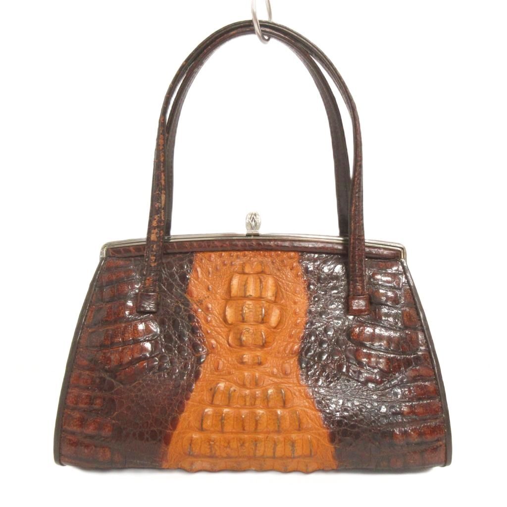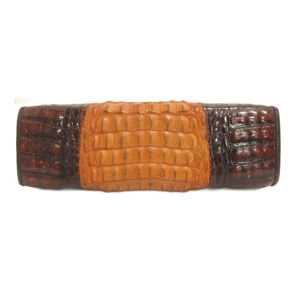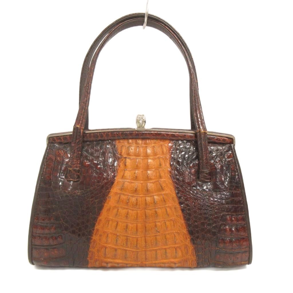 ノーブランド ハンドバッグ カイマン レザー ワニ革 茶 ブラウン レディース