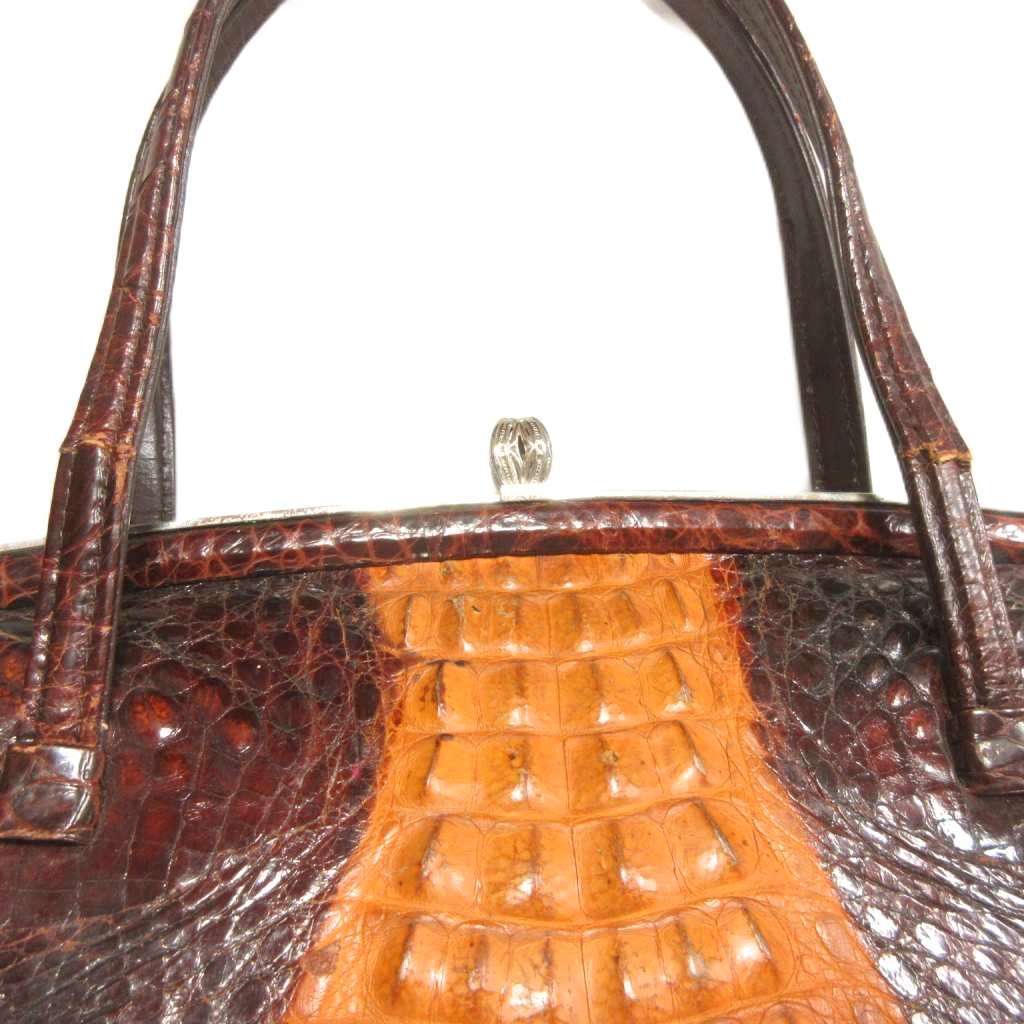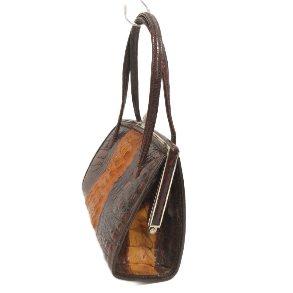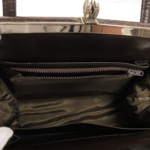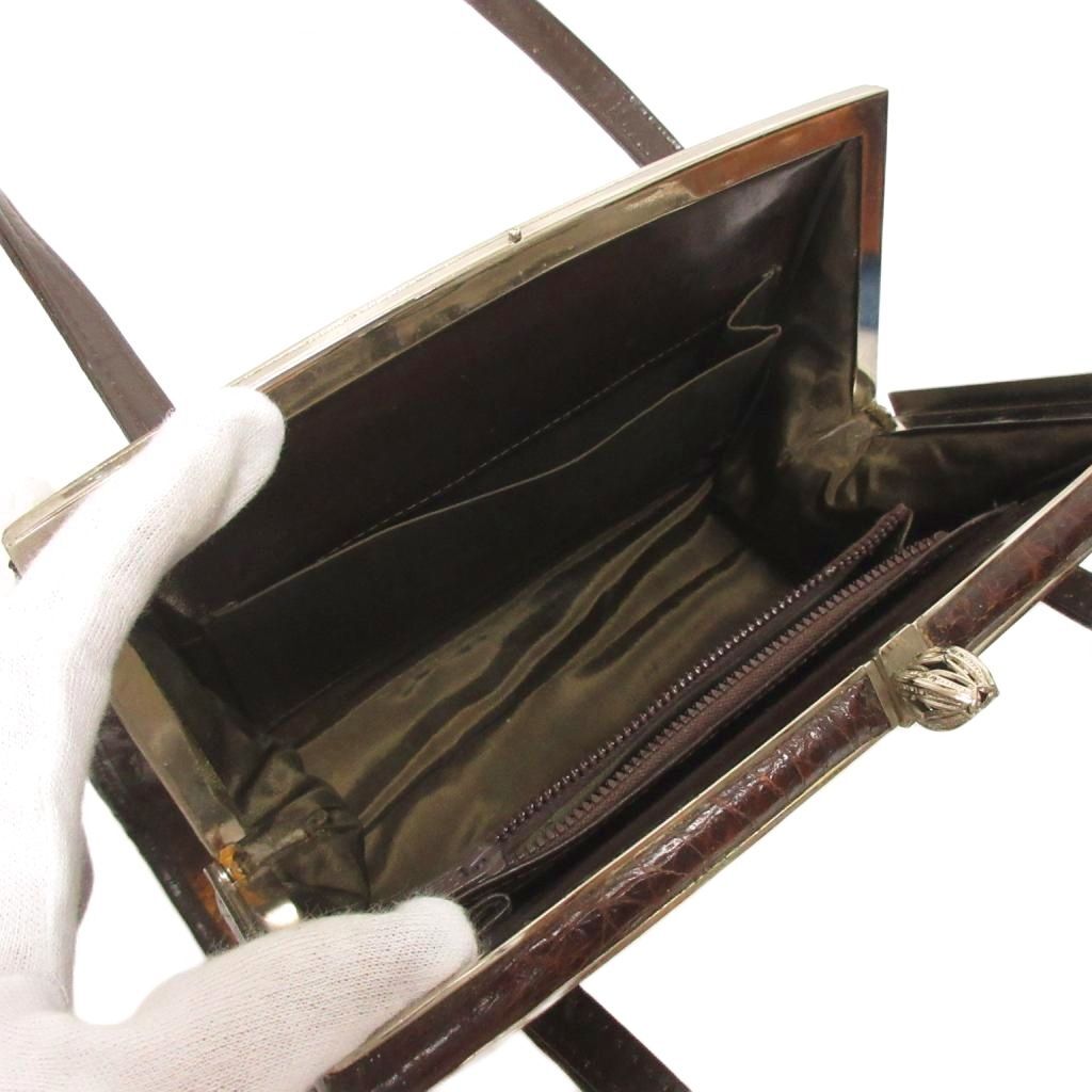 ノーブランド ハンドバッグ カイマン レザー ワニ革 茶 ブラウン レディース