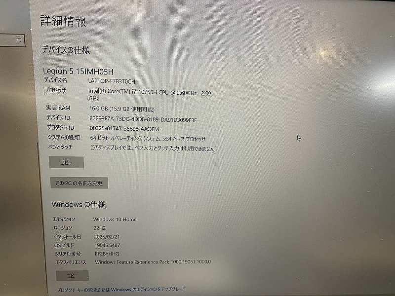 商品名ゲーミングノートパソコン15.6型 /Windows10Home /intel Core i7-10750H2.60GHz /メモリ:16GB /SSD:1TB Legion 5 15IMH05H