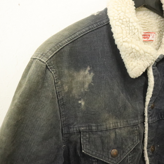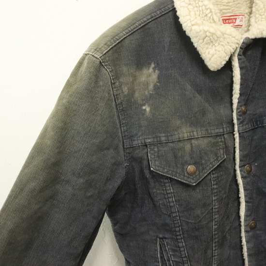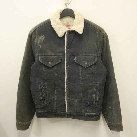 Q910 70sビンテージ リーバイス LEVIS コーデュロイジャケット■1970年代製 表記38サイズ ネイビー 紺 裏ボア プリントタグ アメカジ 古着