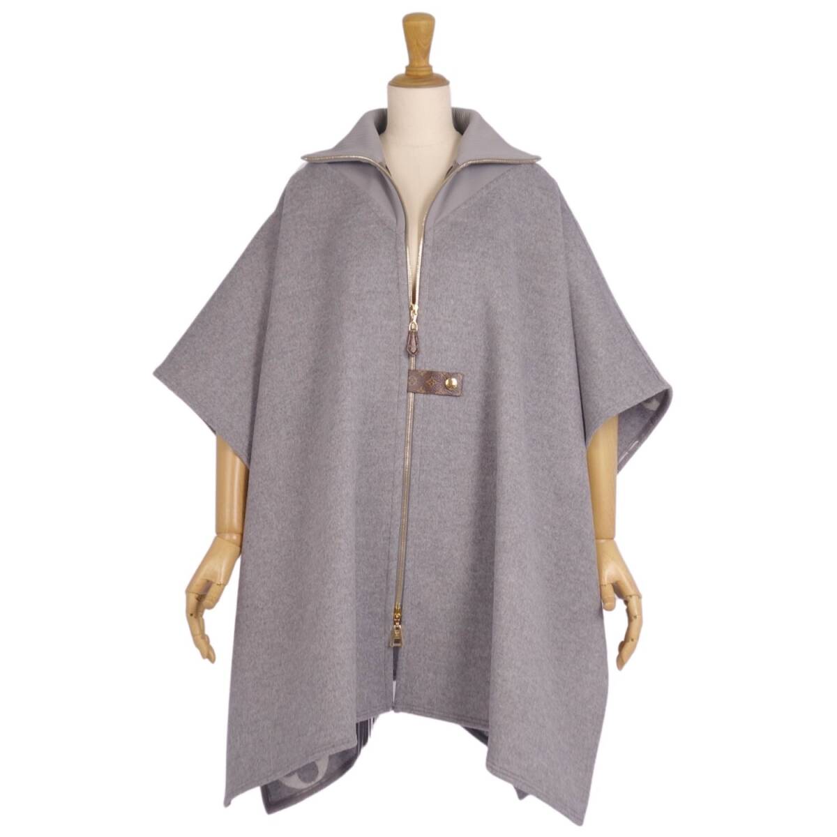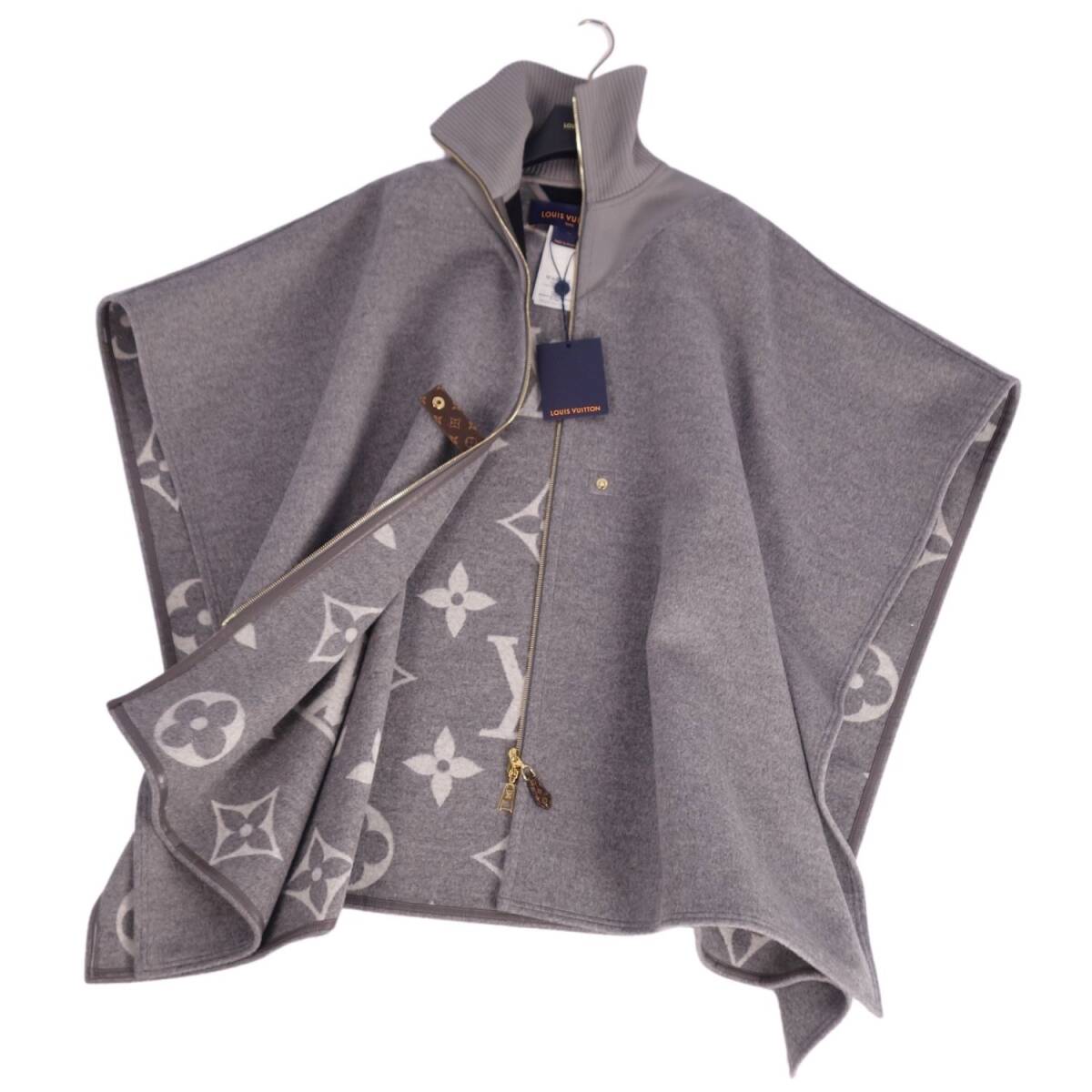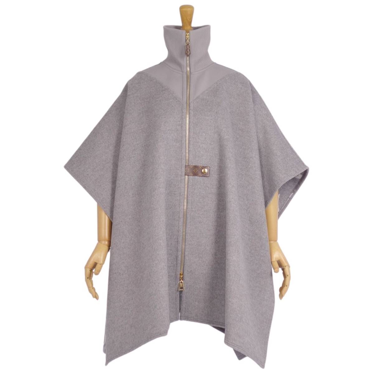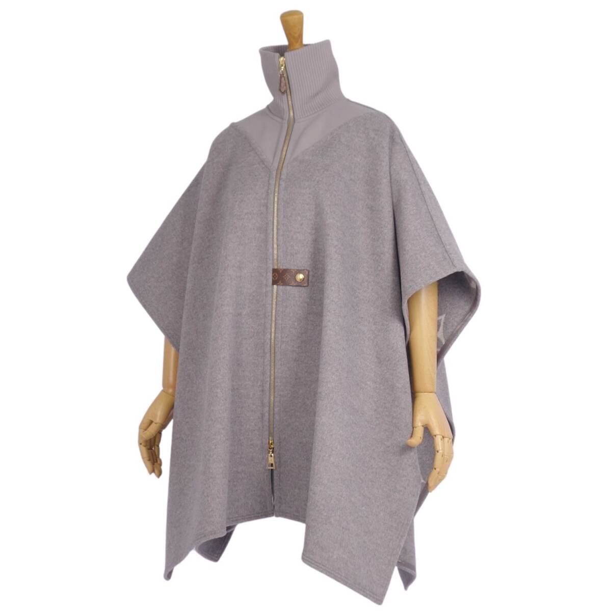 未使用 ルイヴィトン LOUIS VUITTON コート 2021 ポンチョコート 裏モノグラム ウール シルク アウター TU グレー |