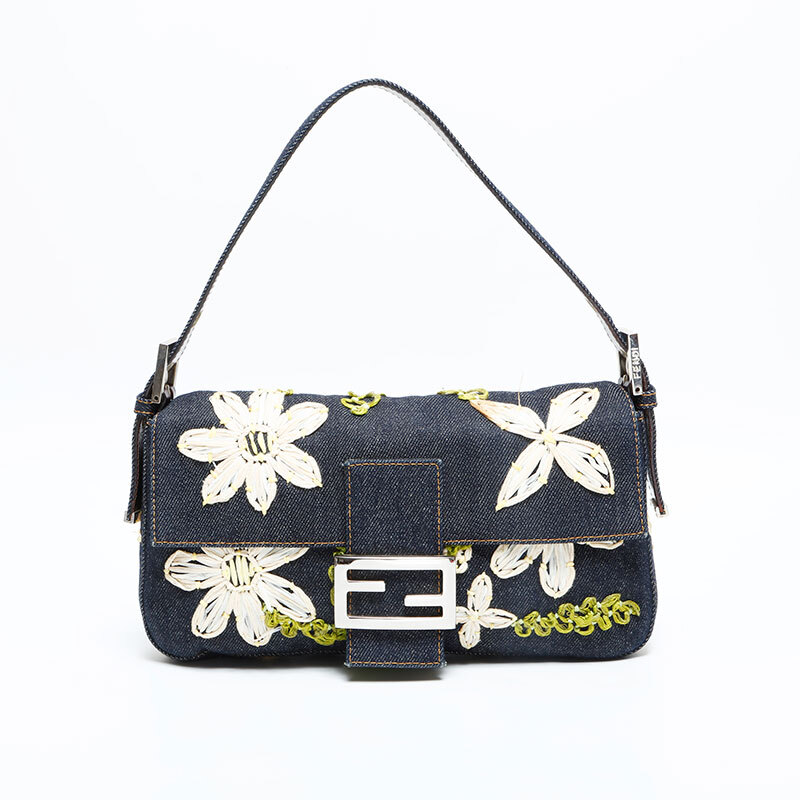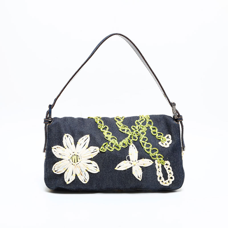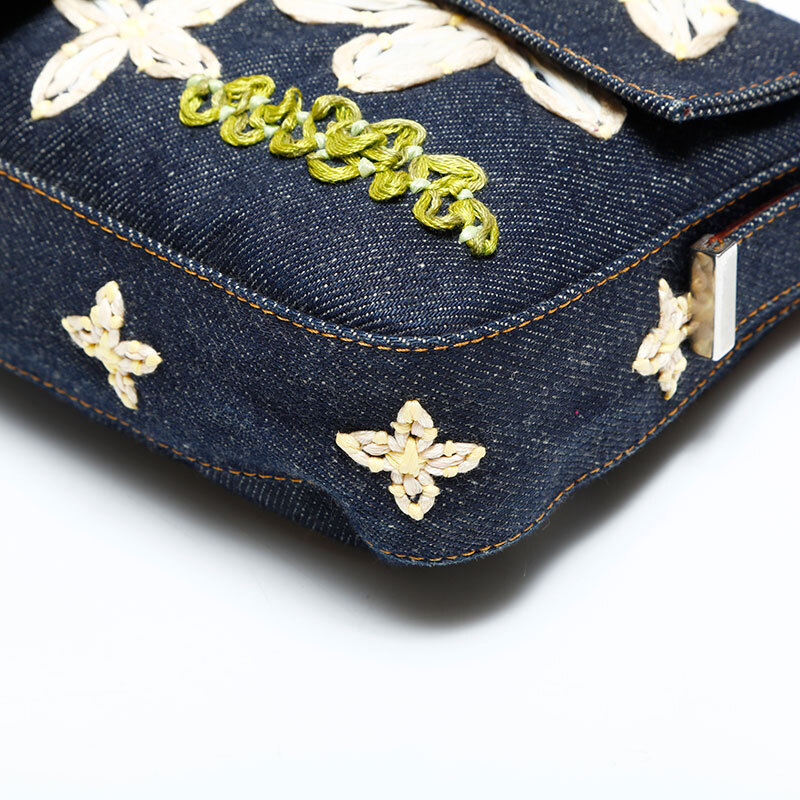 フェンディ FENDI ハンドバッグ デニム フラワー刺繍 マンマバケット ネイビー