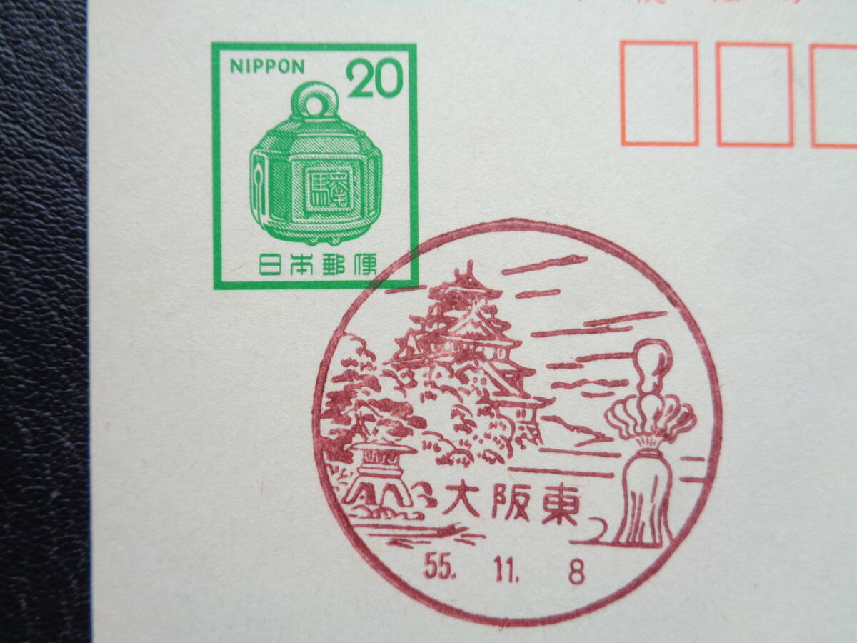 駅鈴はがき    初日印/風景印    愛知・ 犬山/S54.1.20   大阪東/S55.11.8