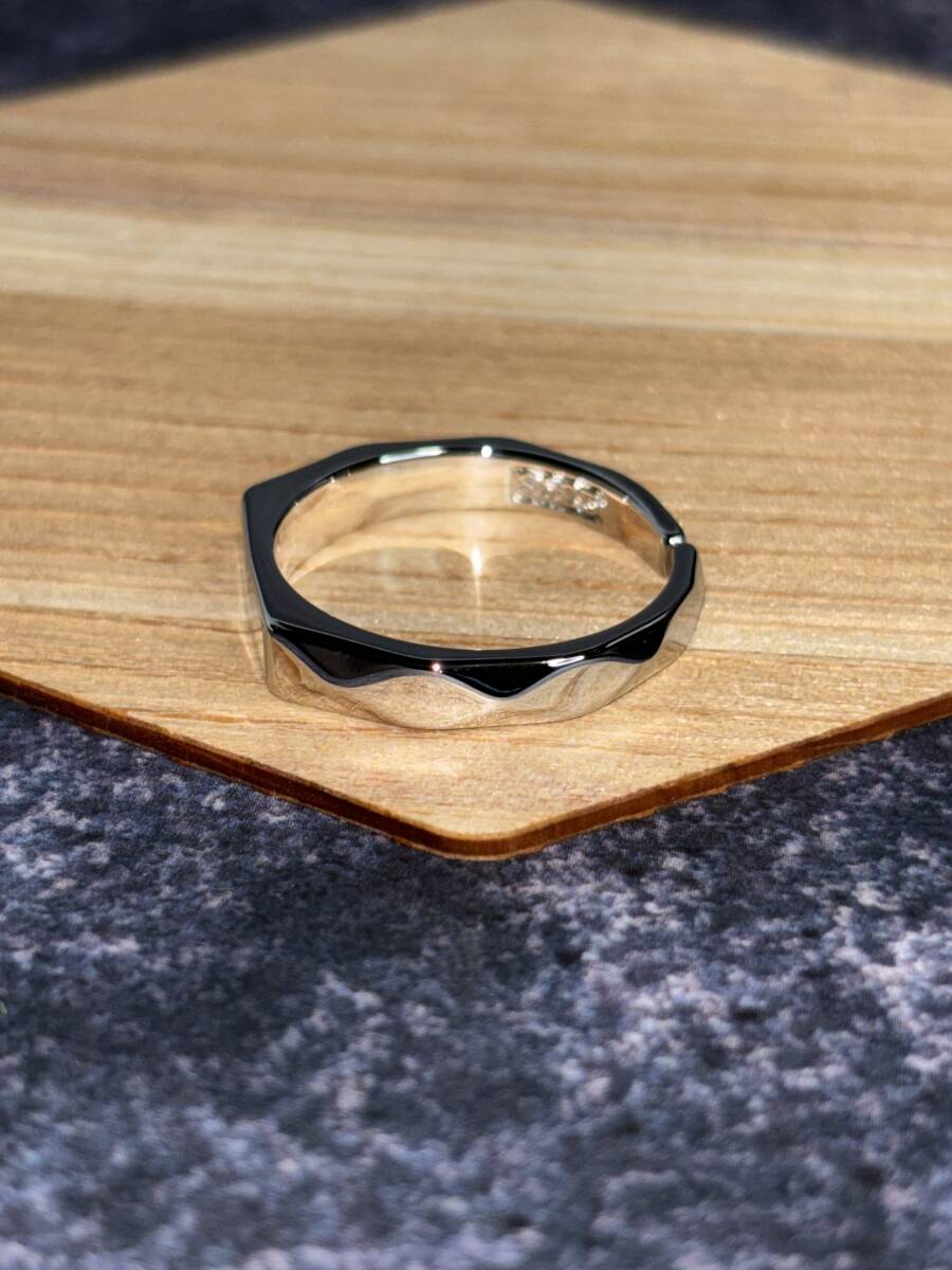 洗練されたモダンデザインが魅力の、細面 印台のシルバーリングです。