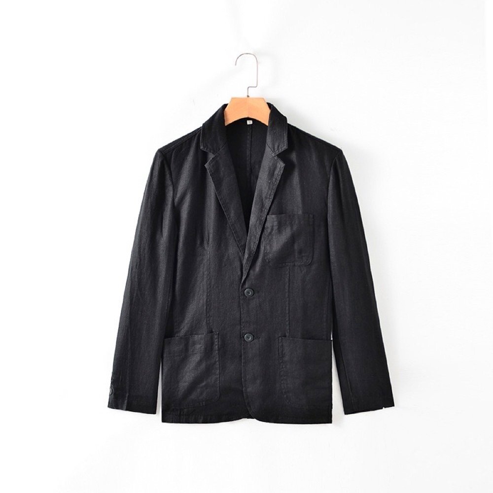 リネンジャケット テーラードジャケット メンズ サマージャケット ブレザー スーツ 麻 ビジネススーツ 長袖 コート 紳士服 ブラック S