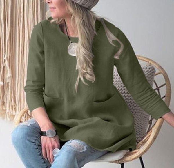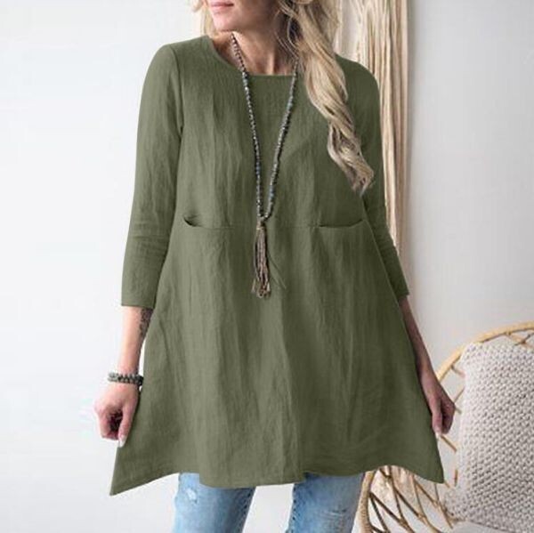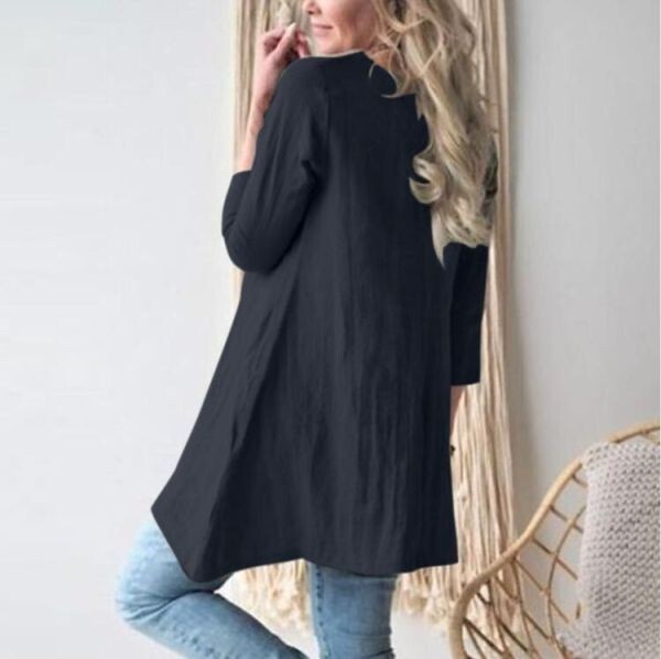 新品 秋 冬 M-3XLサイズカジュアル リネン チュニック ロング ブラウス トップス シャツ 綿麻 大きいサイズ ゆったりブラック