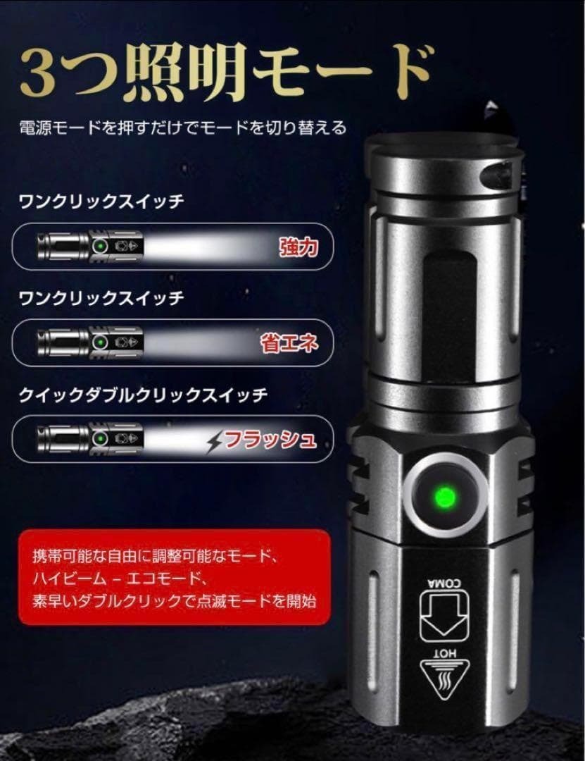 #LED懐中電灯 #小型フラッシュライト #2000ルーメン #USB充電式ライト #ズーム機能ライト #防災グッズ #アウトドア用品 #ハイキングライト #耐久性抜群 #携帯便利