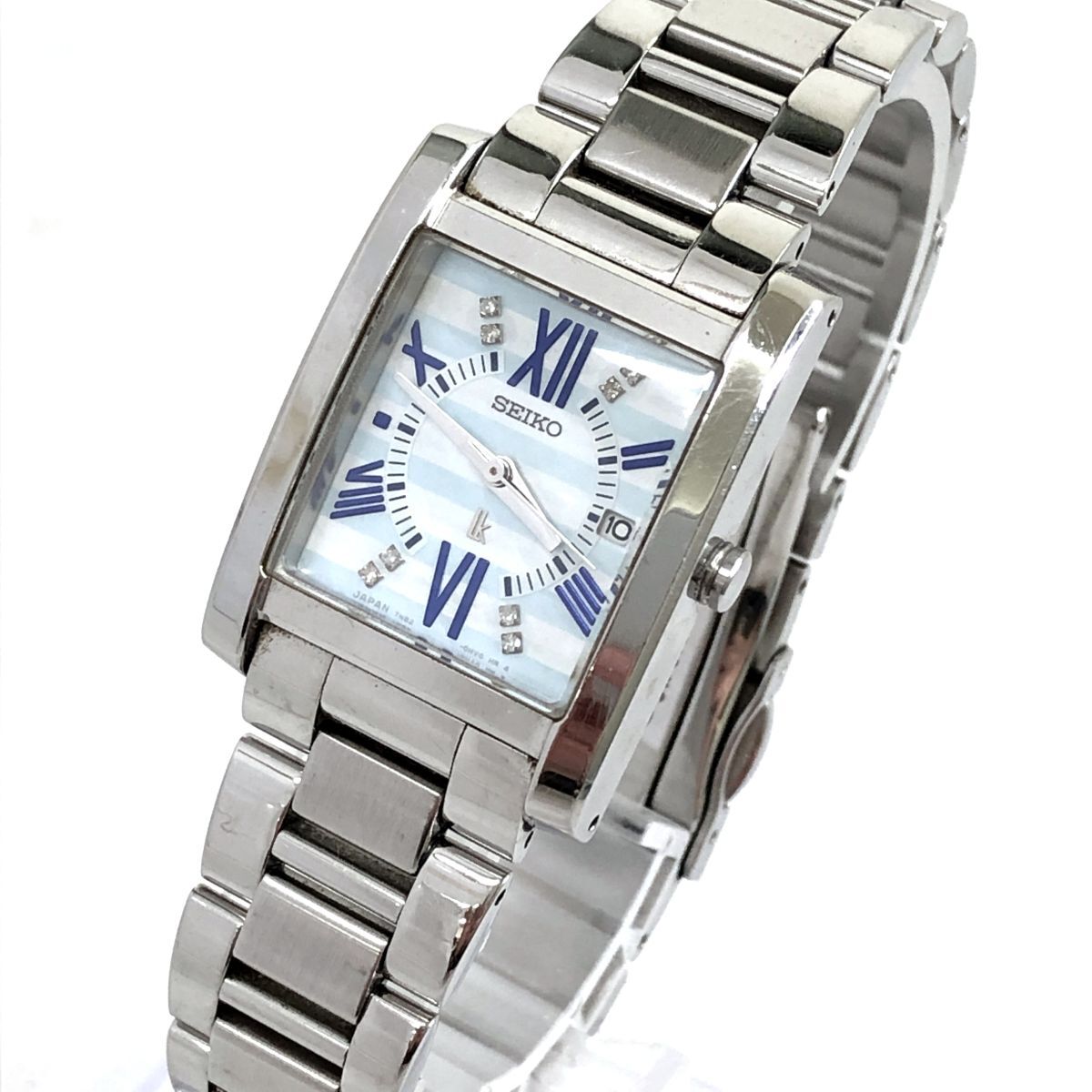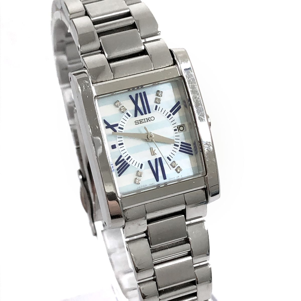 美品 限定品 SEIKO セイコー LUKIA ルキア 腕時計 7N82-0DK0 クオーツ アナログ スクエア カレンダー ボーダー 電池交換済 動作確認済