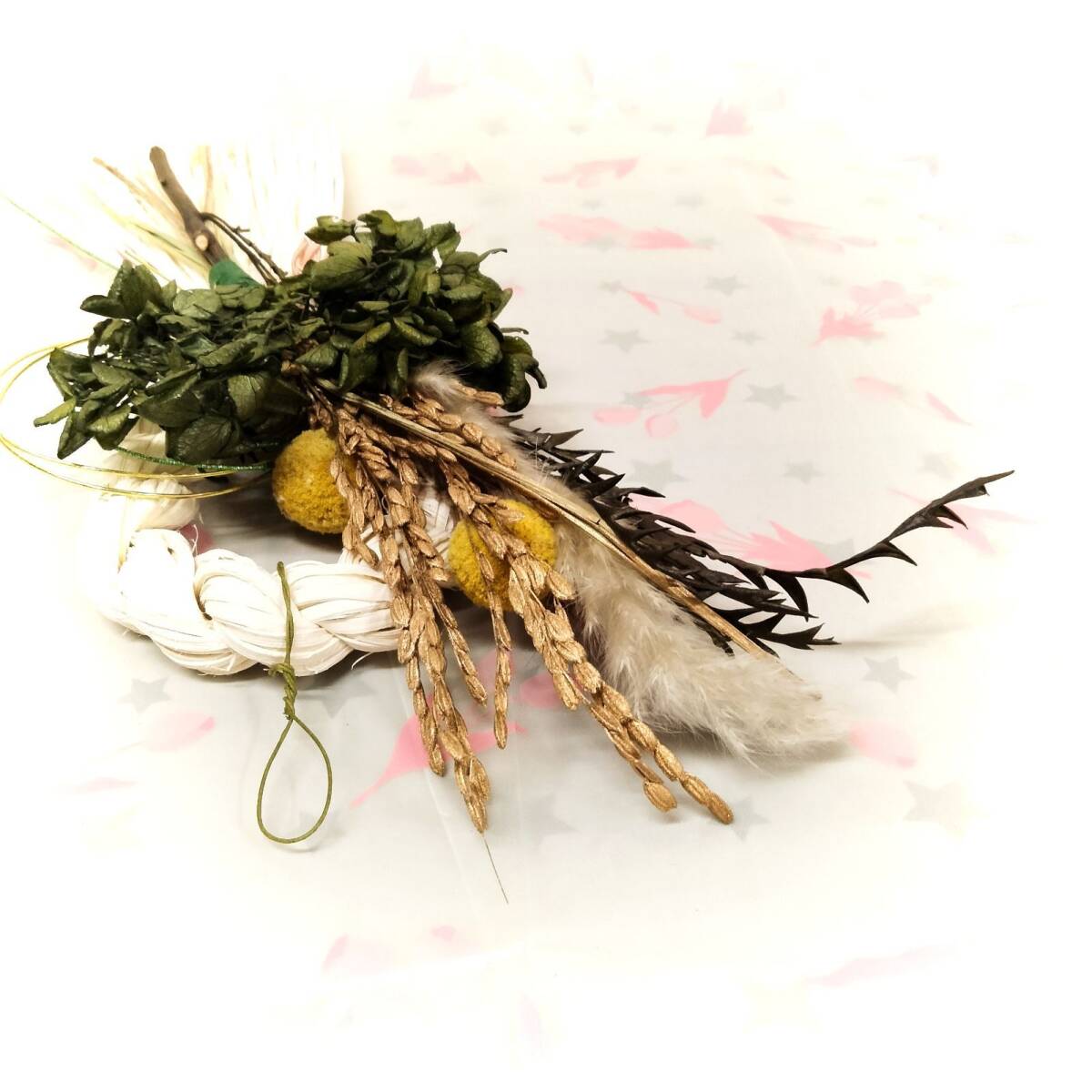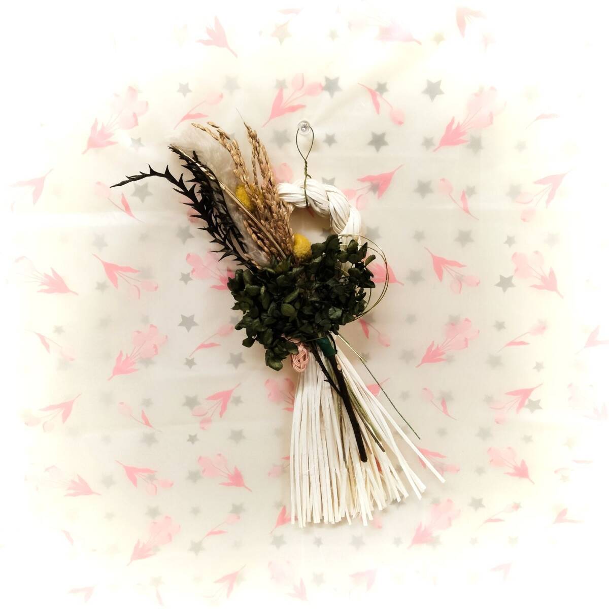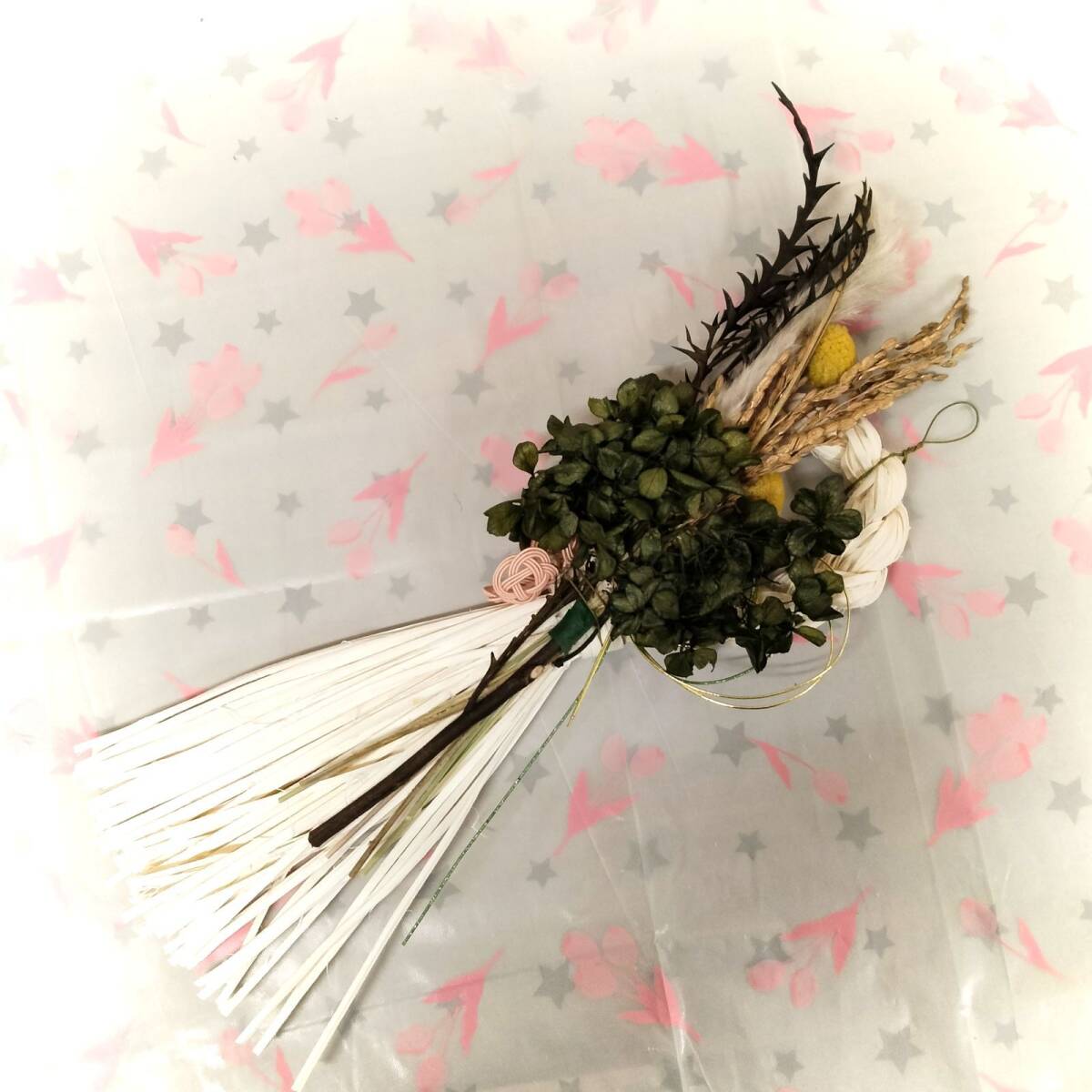 アーティフィシャルフラワーと水引を組み合わせたしめ縄です。