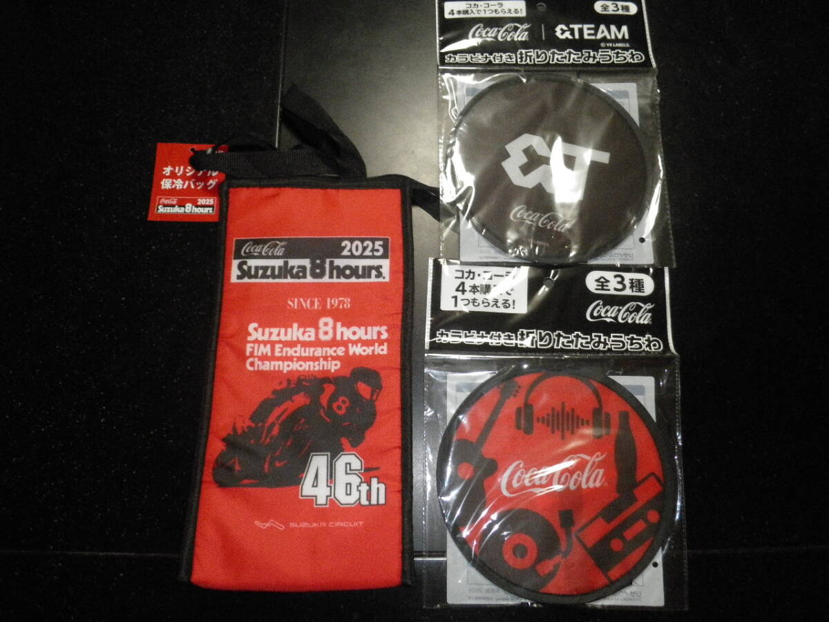 コカコーラ×鈴鹿8耐 46th 2025年 オリジナル保冷バッグ 赤 うちわ 赤 黒 3点セット 非売品 新品未使用品 即決