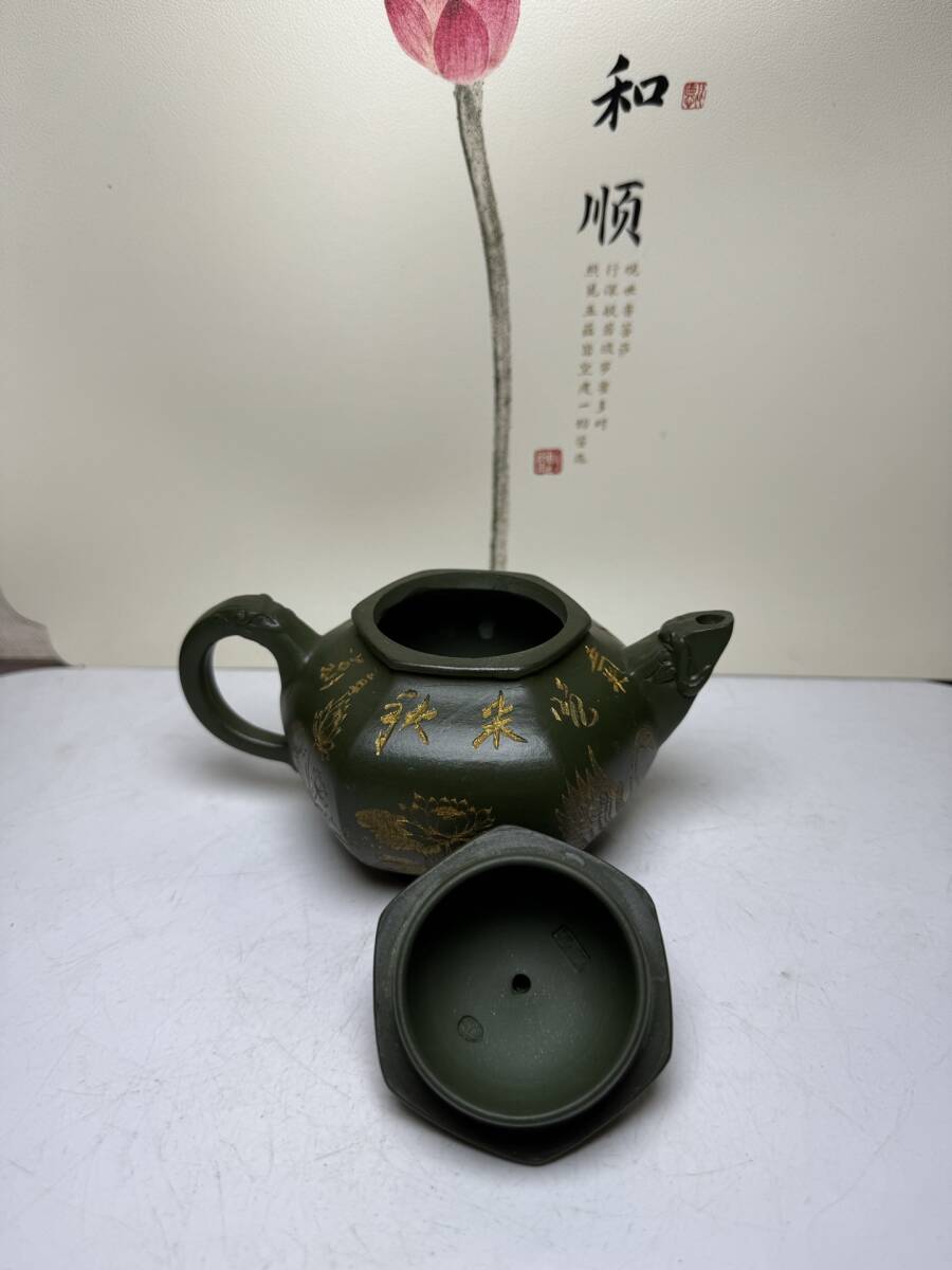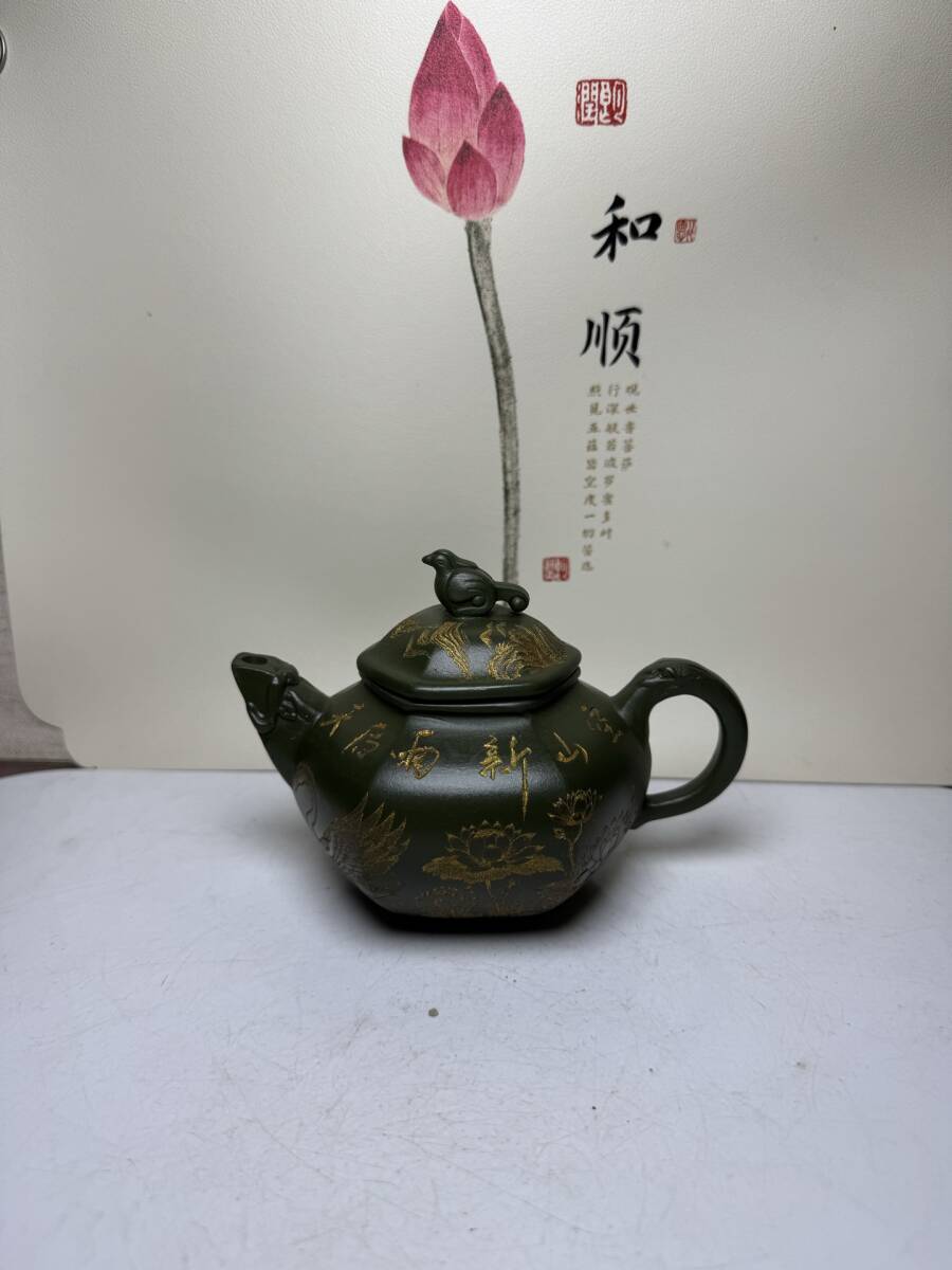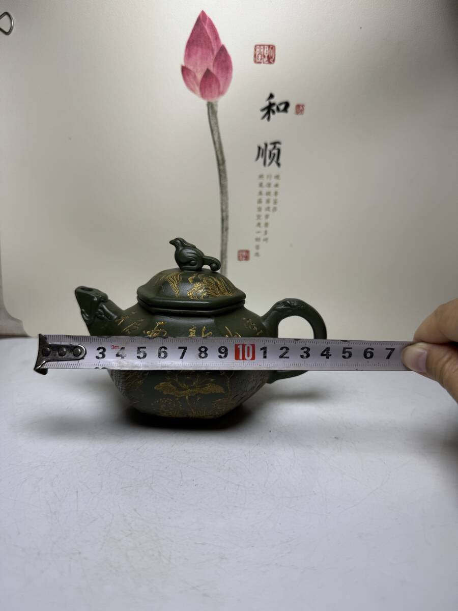 【超珍館蔵】紫砂壺 喜上眉梢壺 顧景舟款 本山綠泥 茶具 茶道品 置物 賞物 古賞物 古董品 古美術品 時代物 旧家蔵出 稀少珍蔵品