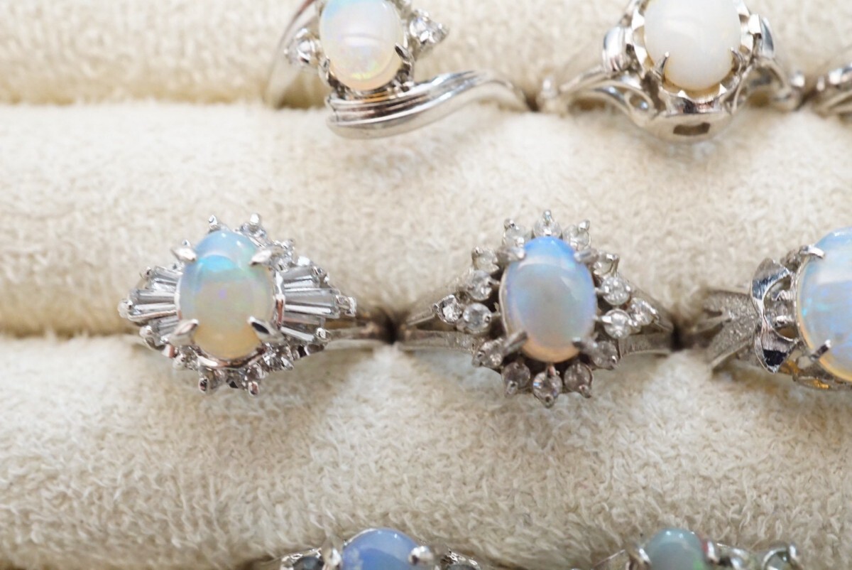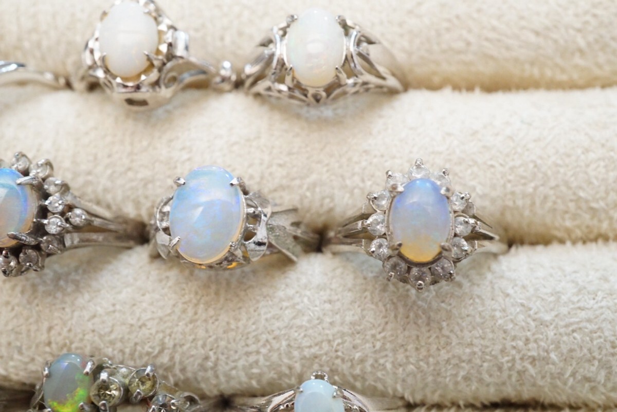 B813 天然オパール opal リング 指輪 ヴィンテージ アクセサリー カラーストーン 大量 セット まとめて おまとめ まとめ売り SILVER含む