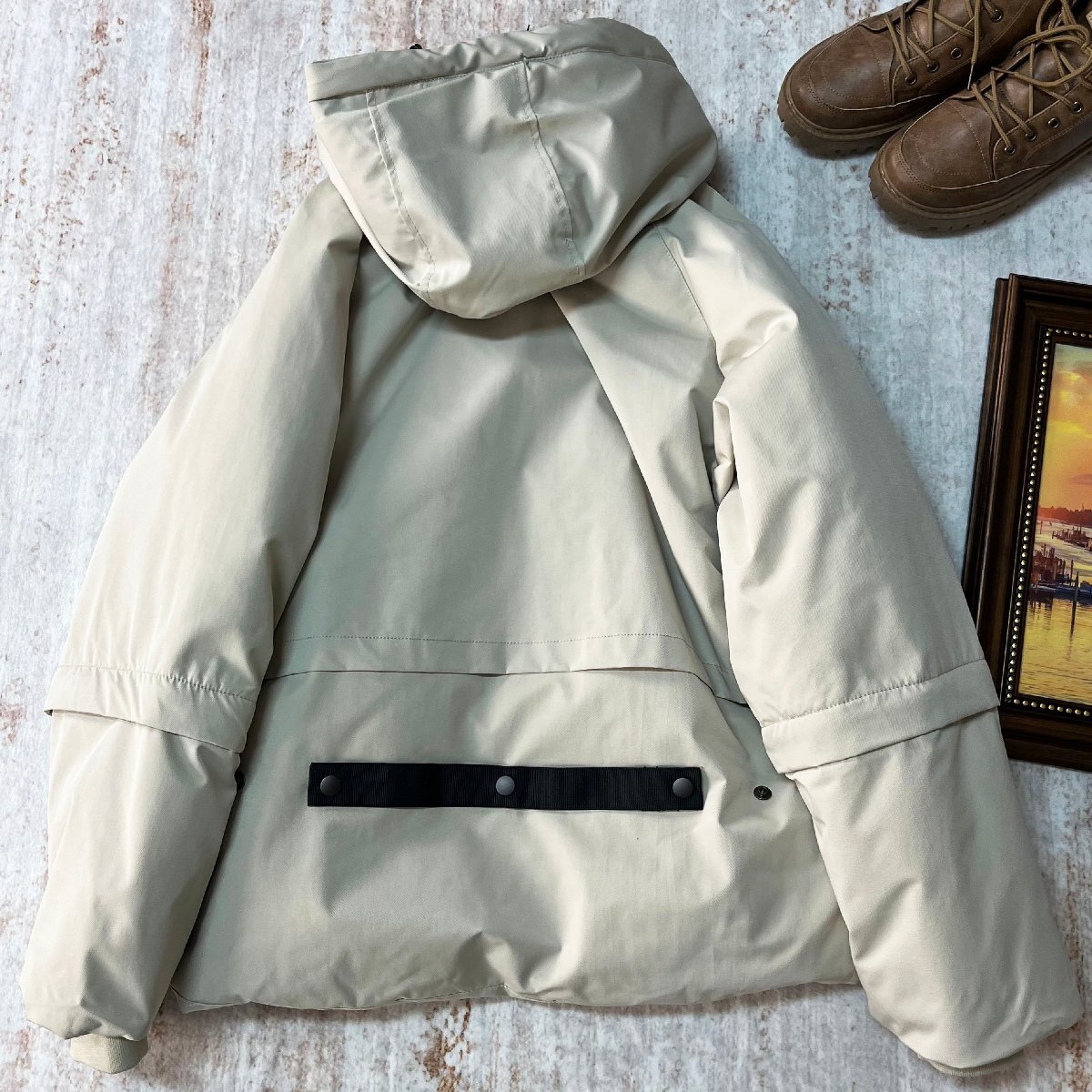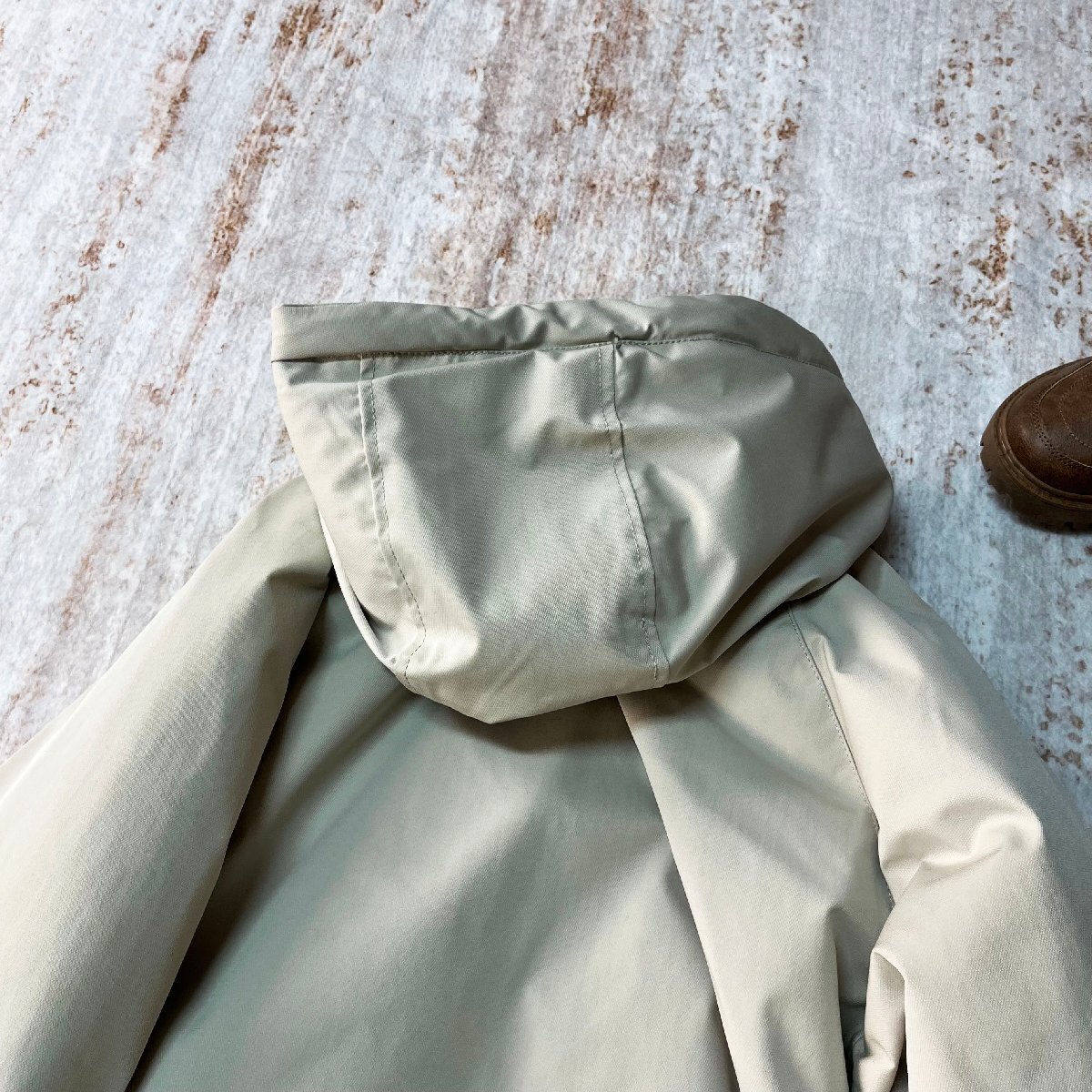 シンプルな無地デザインで、どんなスタイルにも合わせやすく、着回し力は抜群。調節可能なドローコード付きフードが頭部をしっかり保温。袖口はリブ編み仕様でフィット感を高め、風の侵入を防ぎます。両サイドにはファスナー付きポケットを備え、手を温めたり小物を収納したりと実用性も。さらに立ち襟デザインで首元までしっかりと暖かさをキープ。