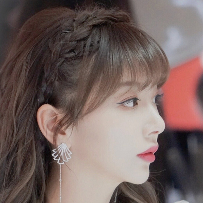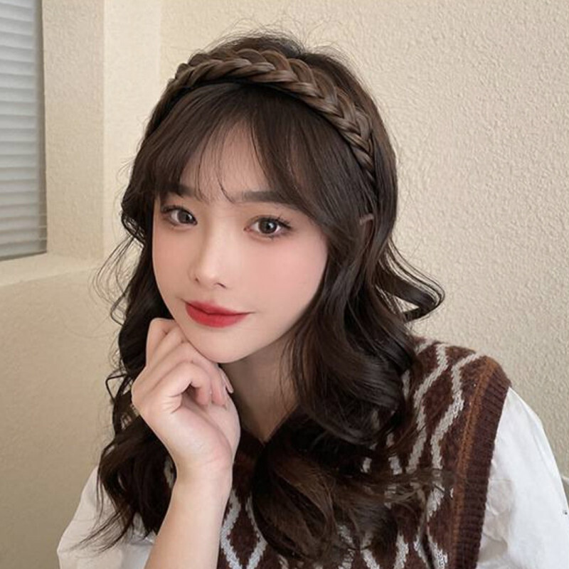 編み込みカチューシャ ブラウン 三つ編み おしゃれ 学生 ヘアアレンジ ウィッグ