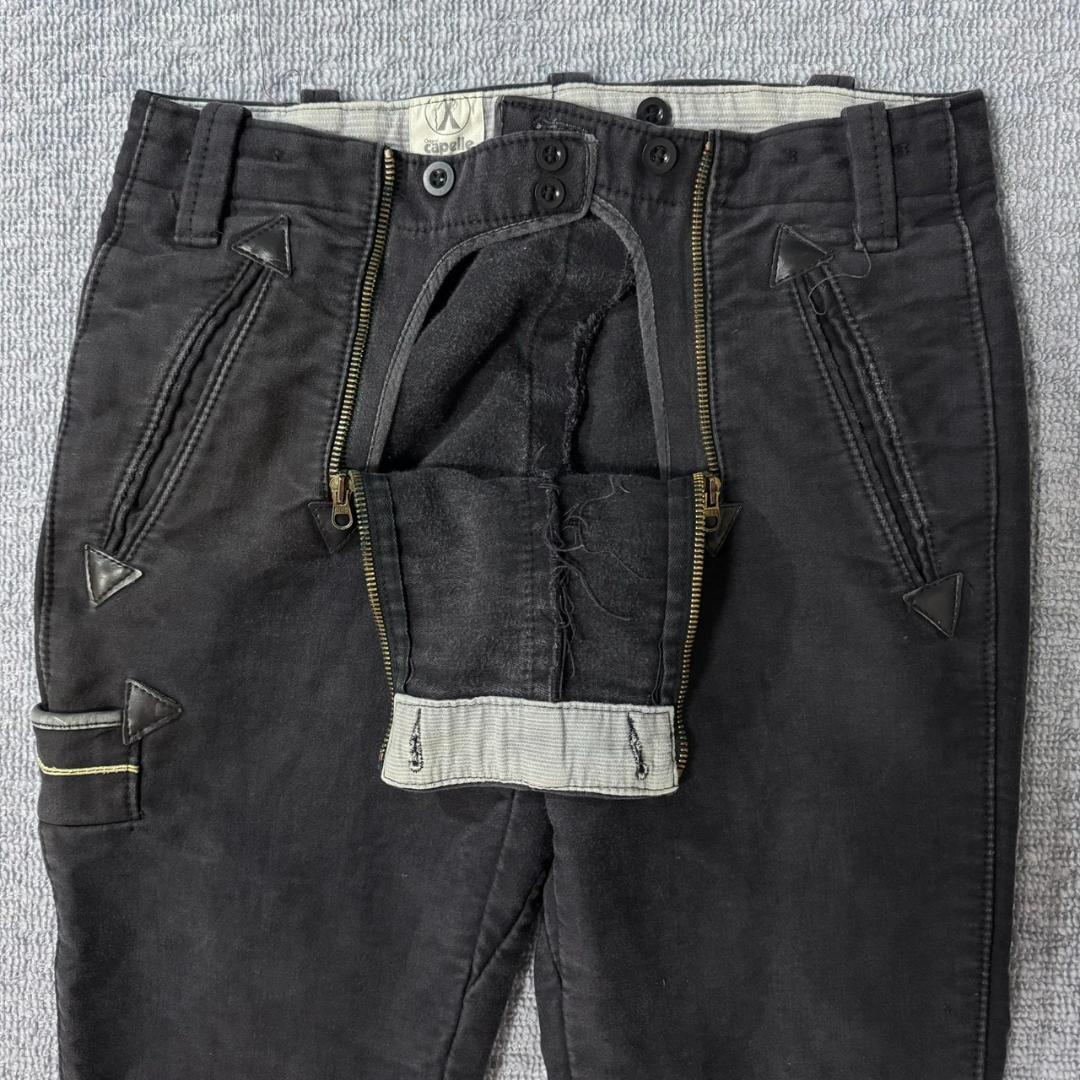 林業用として使われていたタフな一本で、フロントのダブルジップやレザーパッチ補強など無骨なディテールが魅力。