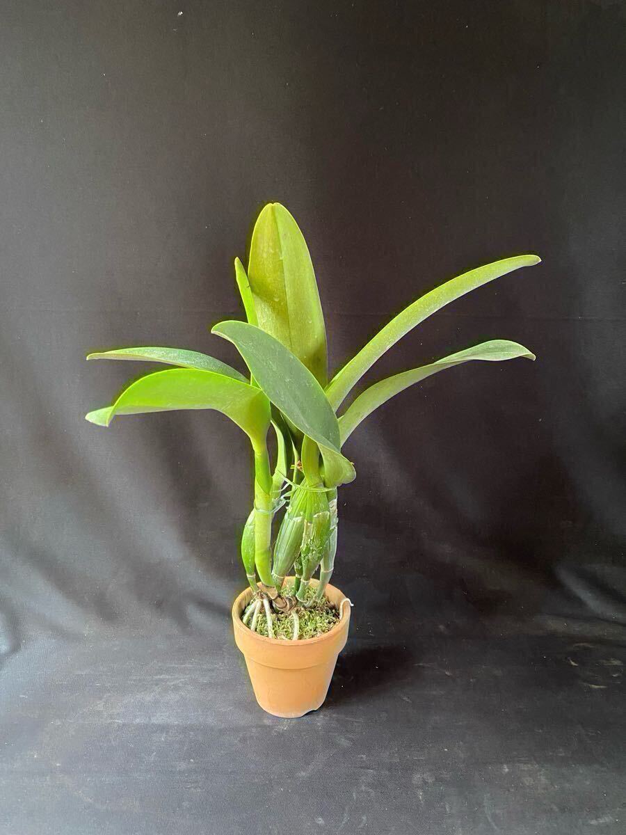 この品種の魅力は、何といっても暖か味のあるオレンジ赤の色彩にあります。片親にRlc.Oconee をもち、赤花の今後の可能性を感じる品種です。今回シース付き良株です。
