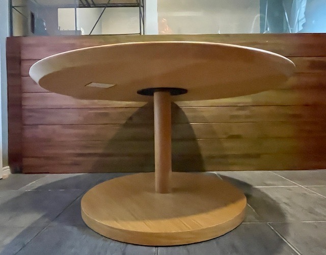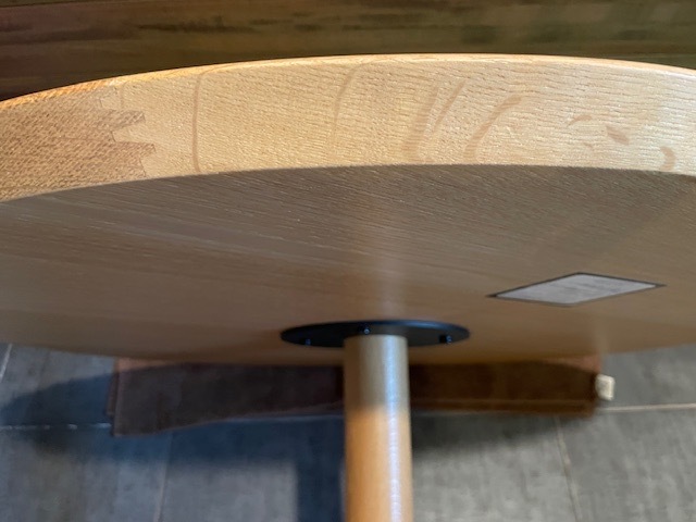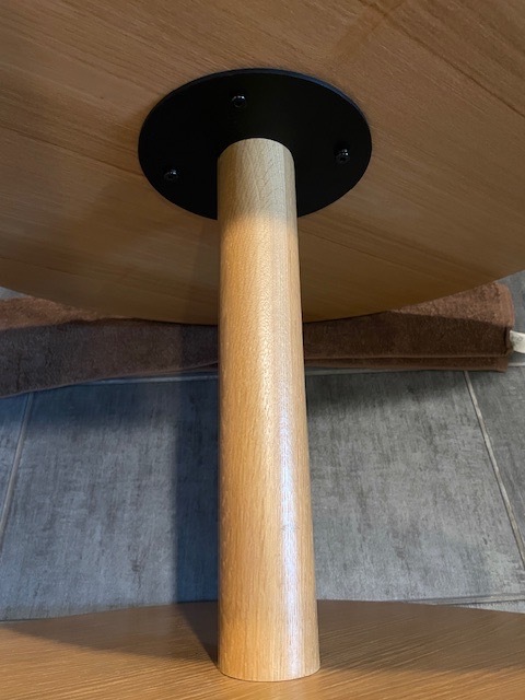 木目やカラーリングがナチュラルで他の家具とも相性良く、一本脚のデザインが空間を軽やかにしています。