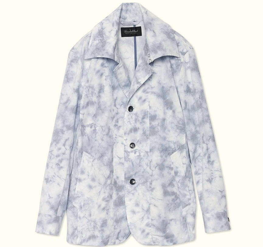 ■シアサッカーマーブルプリント素材で仕上げた返し衿デザインのブルゾン