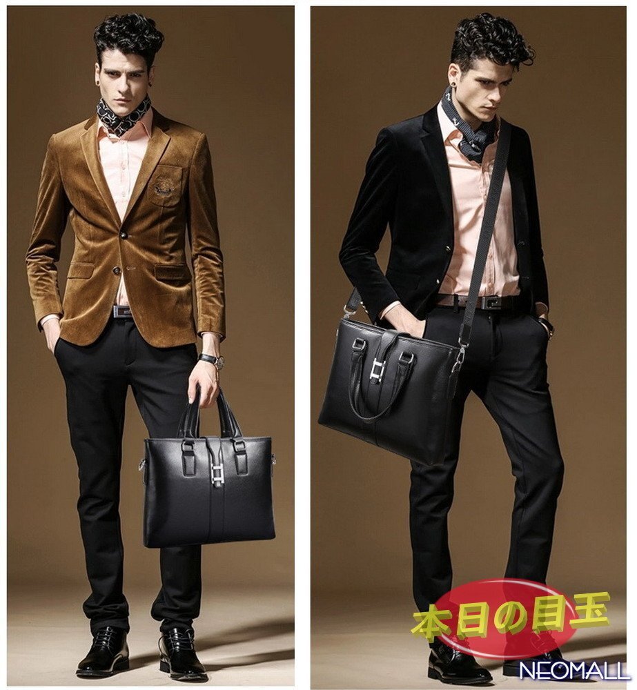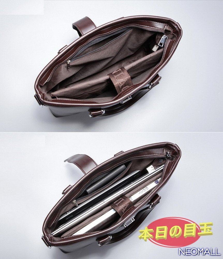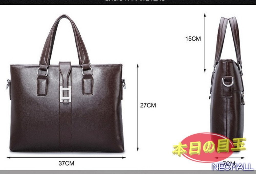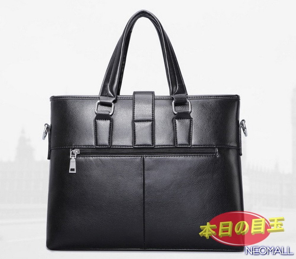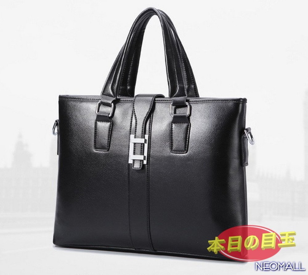 1円〜 新品 メンズ 高級PUレザー ビジネスバッグ【603】ブラック ブリーフケース ショルダー スクエア 横型 大人気 質感◎