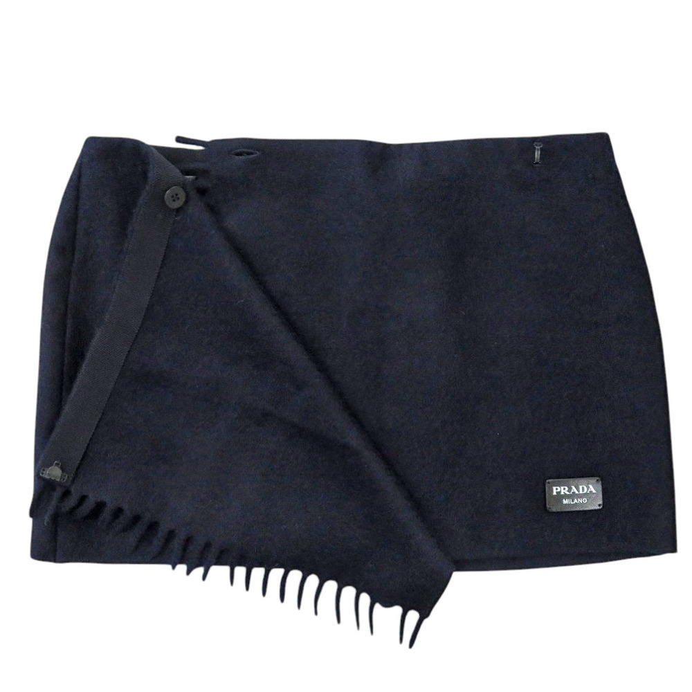 新品同様 プラダ P112XE カシミヤ ネイビー ミニスカート 巻きスカート 0332 PRADA