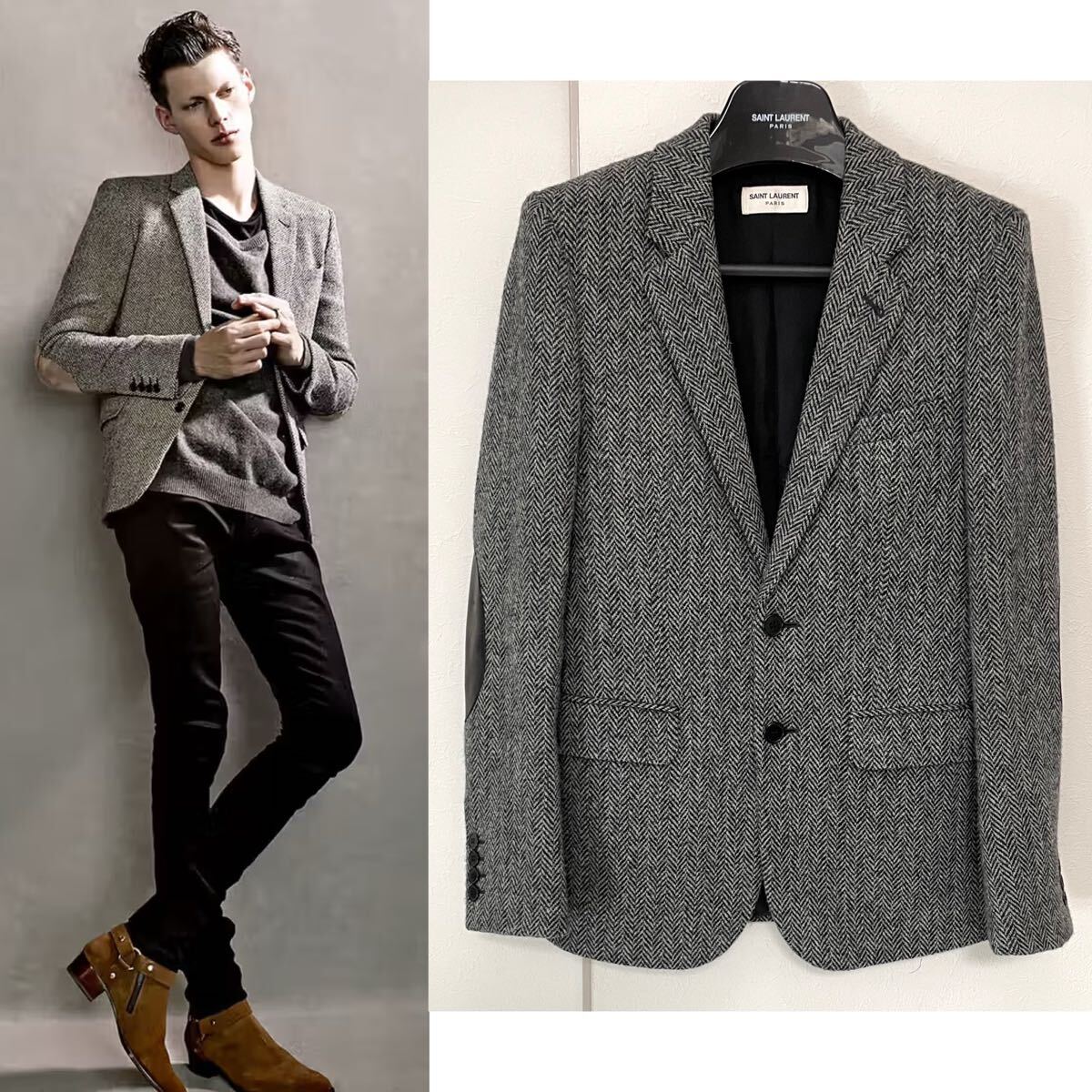 サンローランパリ エディスリマン 2013AW レザーパッチ ツイードテーラードジャケット、サイズ44になります。