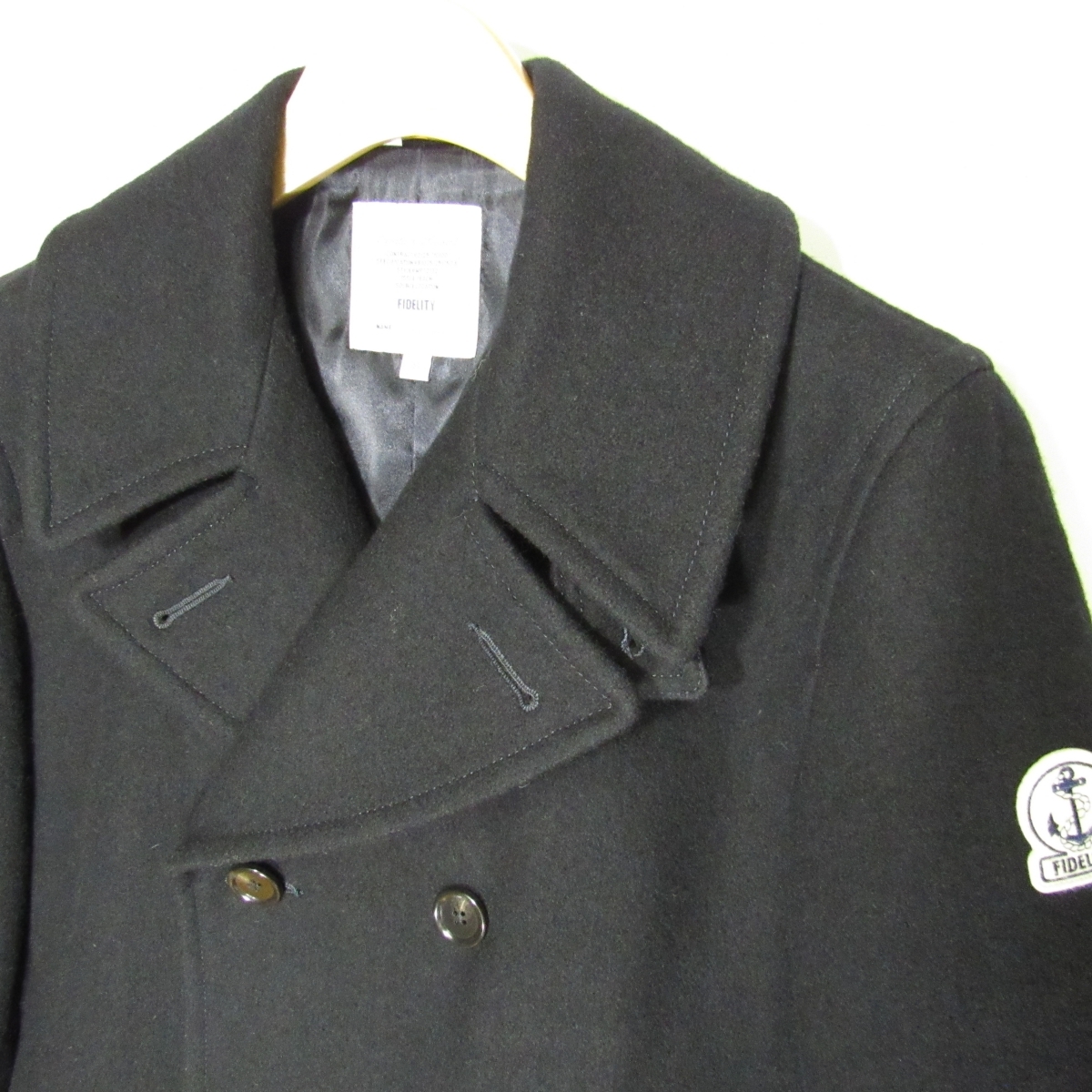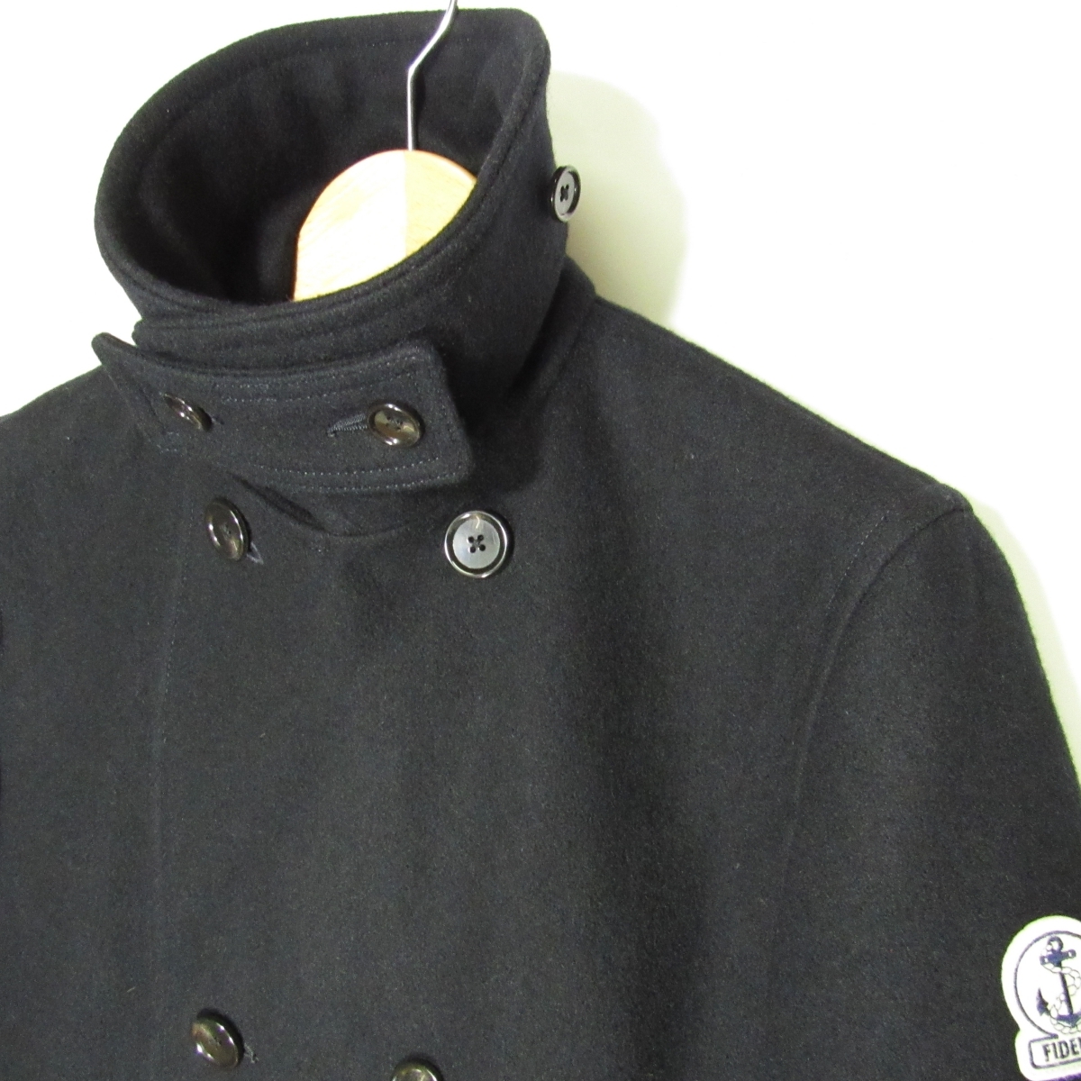 US NAVY(アメリカ海軍)にPEA COATやCPO JACKETなどを納めていたブランドとして、本国アメリカはもとより日本でも有名な「FIDELITY」 ピーコートの定番といえば「FIDELITY(フィデリティ)」を思い浮かべる人も多いのではないでしょうか。 ウールにナイロンが10%混ざったしっかりとしたメルトン生地で、ミリタリーならではの耐久性を重視した造りではあるものの、海軍ルーツのアイテムらしく、どことなく小綺麗な印象です。 風の強い甲板でも音を聞き取る為と言われる大きめの襟等、アメリカ海軍ルーツの醍醐味が存分に詰まったアイテム。 襟に付属のチンストラップにより、雨風の侵入を防ぐ防寒性を備えます。 8B PEA COAT / メンズ / 冬物 型番:FD16F TWM103M ダブル8つボタン3つ留め/センターベント/裏地-総裏/肩パッドなし/腰フラップポケット/左に内ポケットあり |